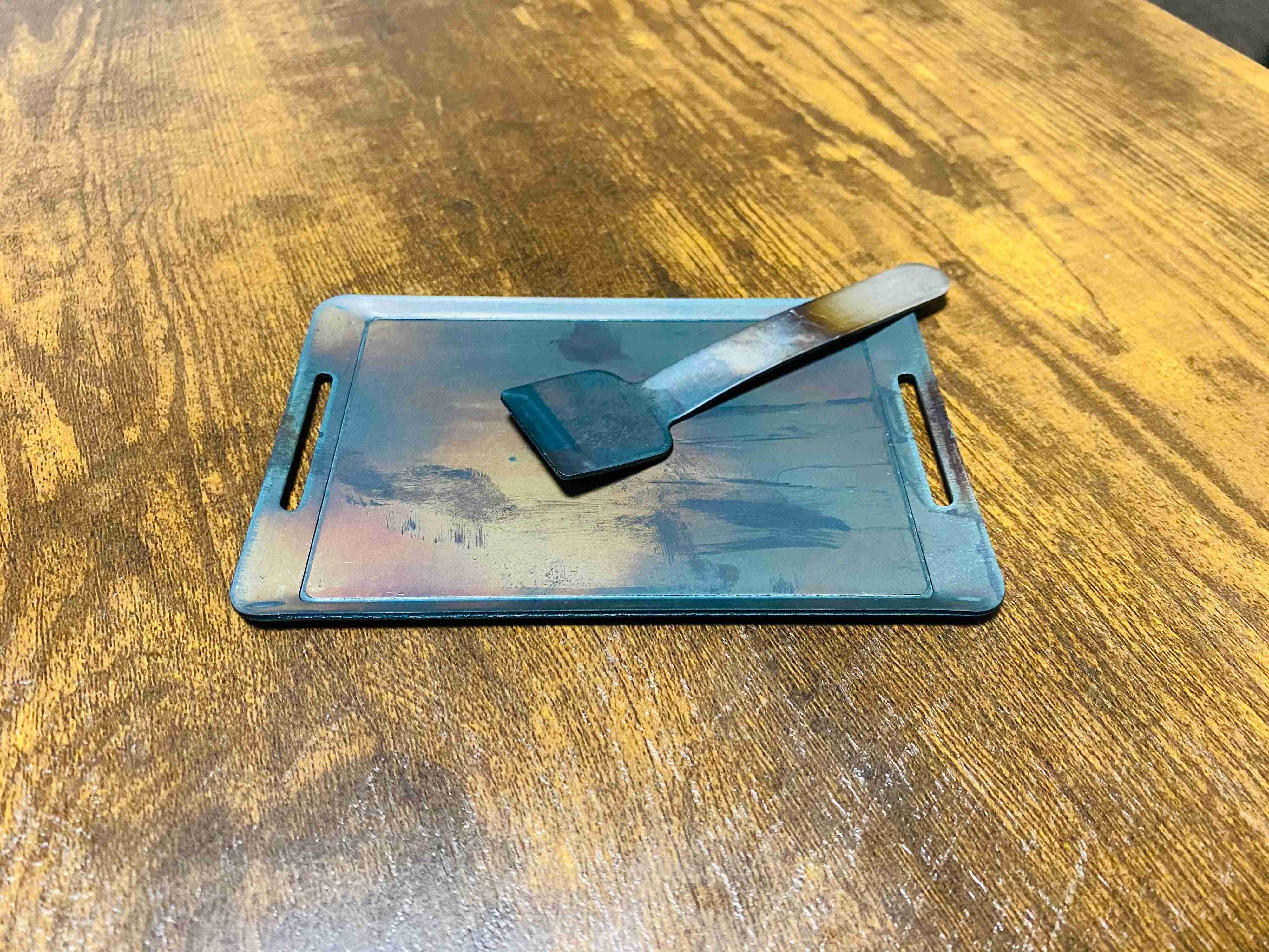 ミニ鉄板という名の通り、本当にミニ!手のひらにすっぽり収まってしまうサイズです。