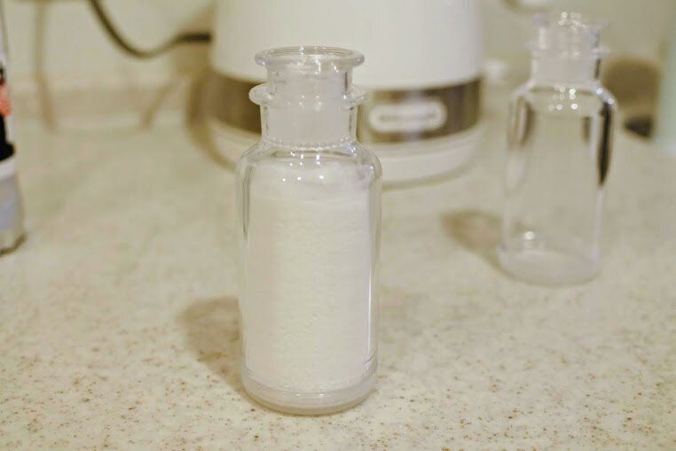塩を入れてみたらこんな感じになります。見た目がほんとオシャレなのでラベルを貼って見せる収納もありですよ。