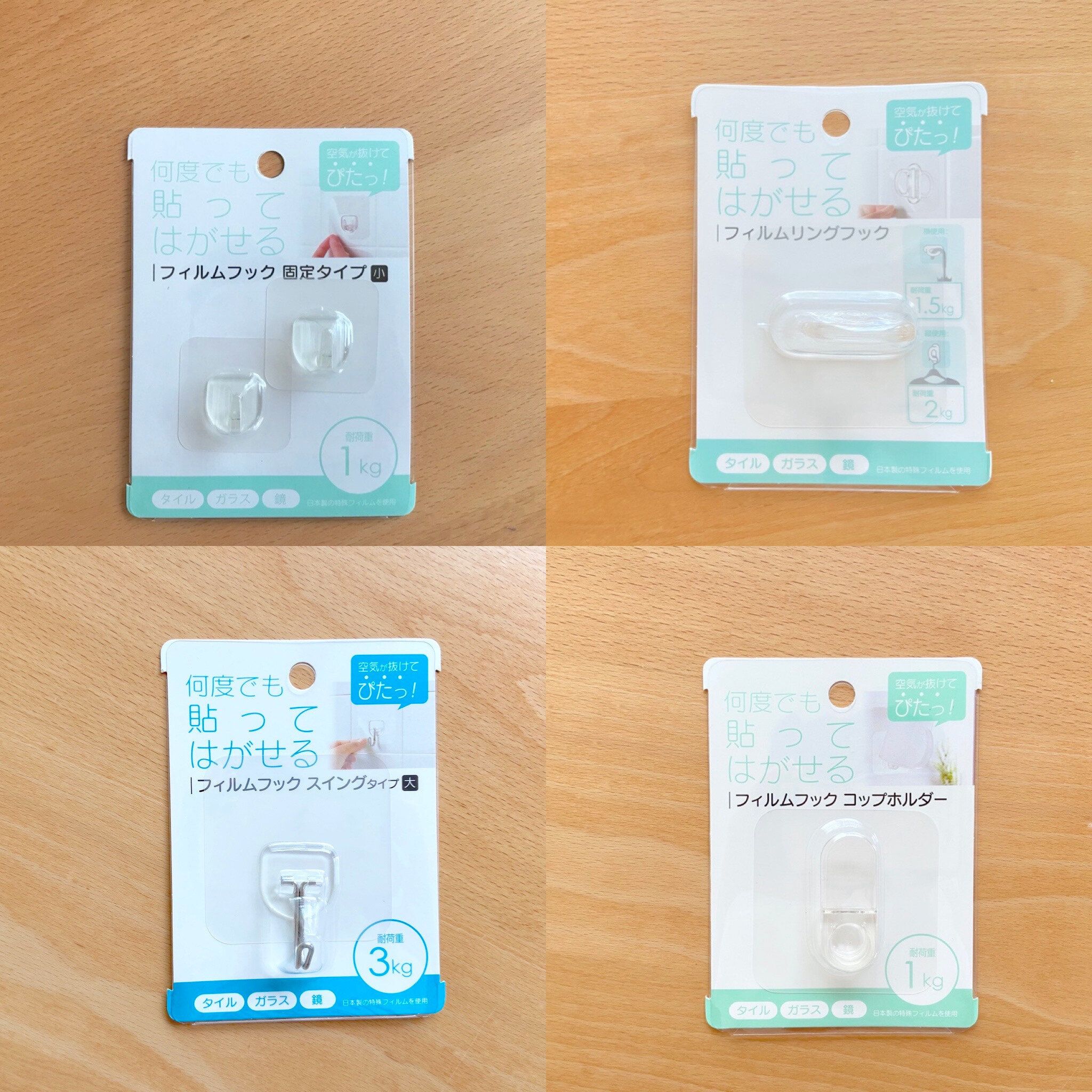 セリアで人気のフィルムフックシリーズについて、我が家での活用例をご紹介しています。