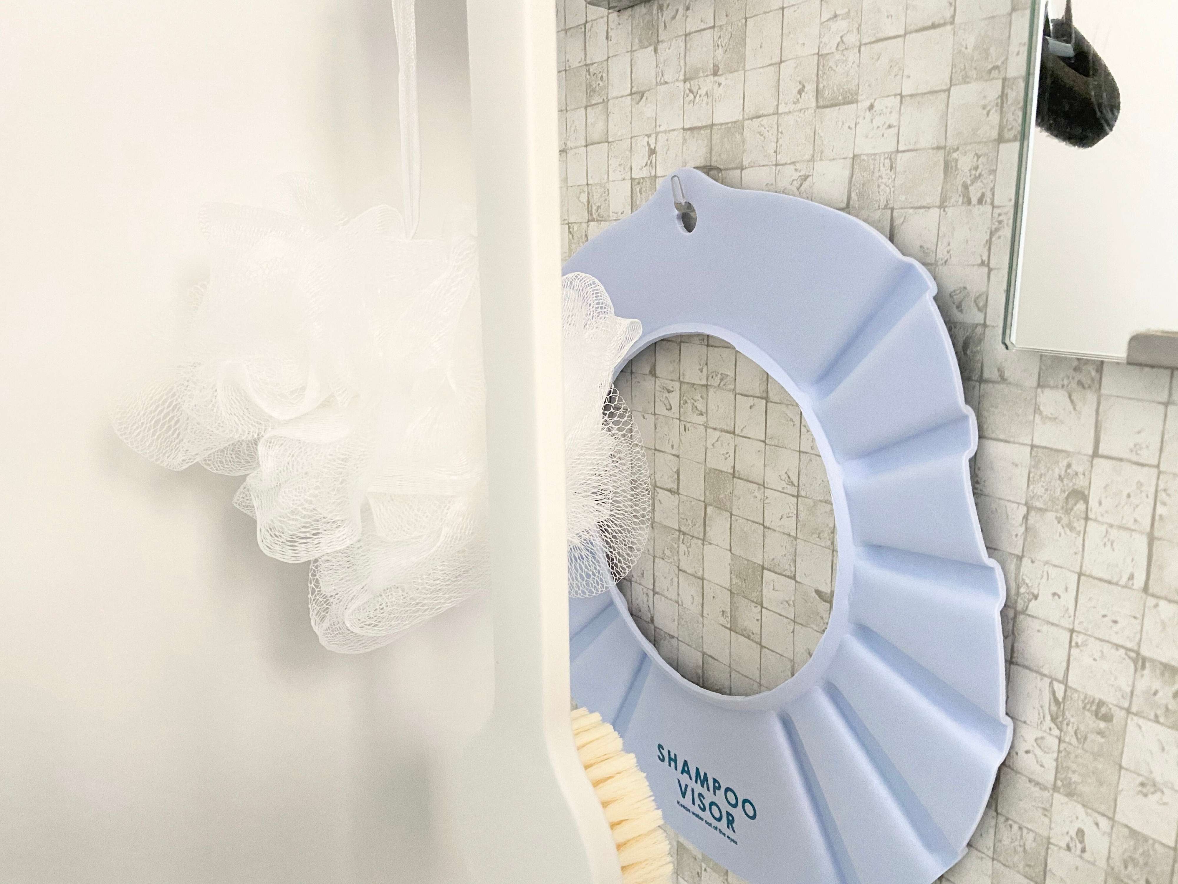 更にシャンプーハットもフィルムフックを使って浮かし収納にしています。