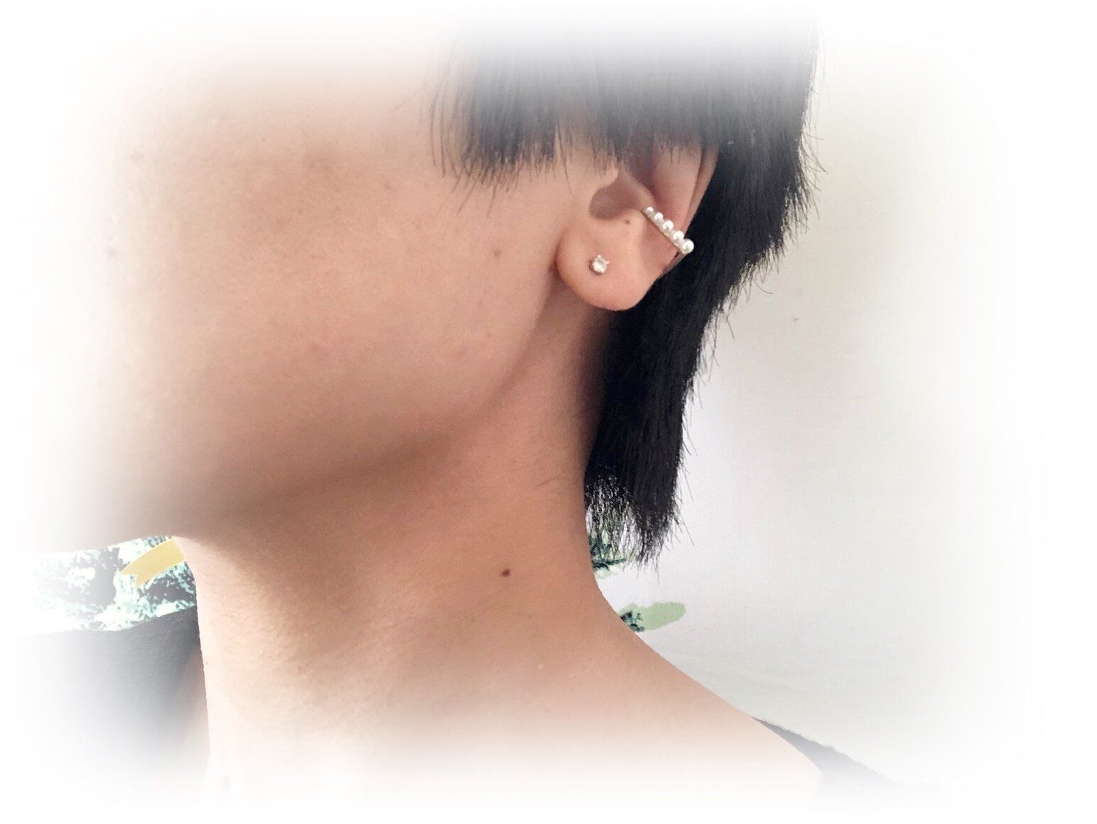 大きすぎないサイズとさりげないデザインです。イヤーカフは若い人向けだったり、少しカジュアルすぎるかな?というイメージもありますが、これなら大人も着けられます。小粒のパールが上品で、カジュアルな服にもキレイ目な服にも合わせられますね。とても100円には見えない!「高見え」とはこういうことなのね!と思いましたよ。