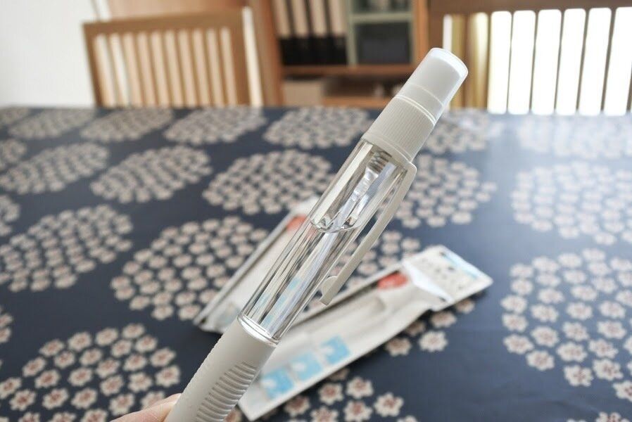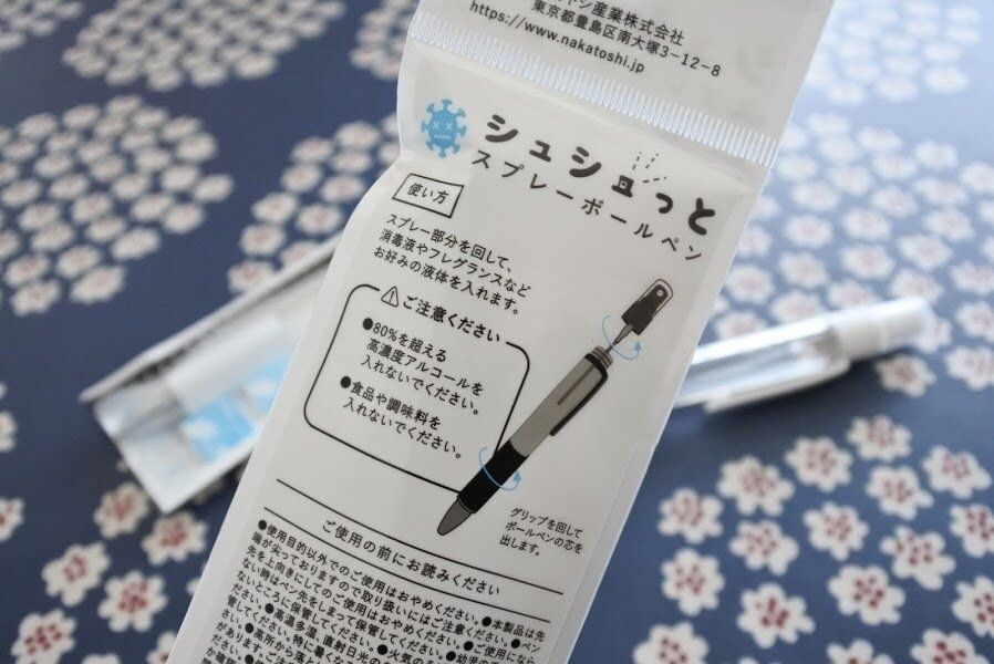 シュシュっとスプレーボールペン!そのネーミング通り、除菌スプレーにもボールペンにもなる1本2役なんです。