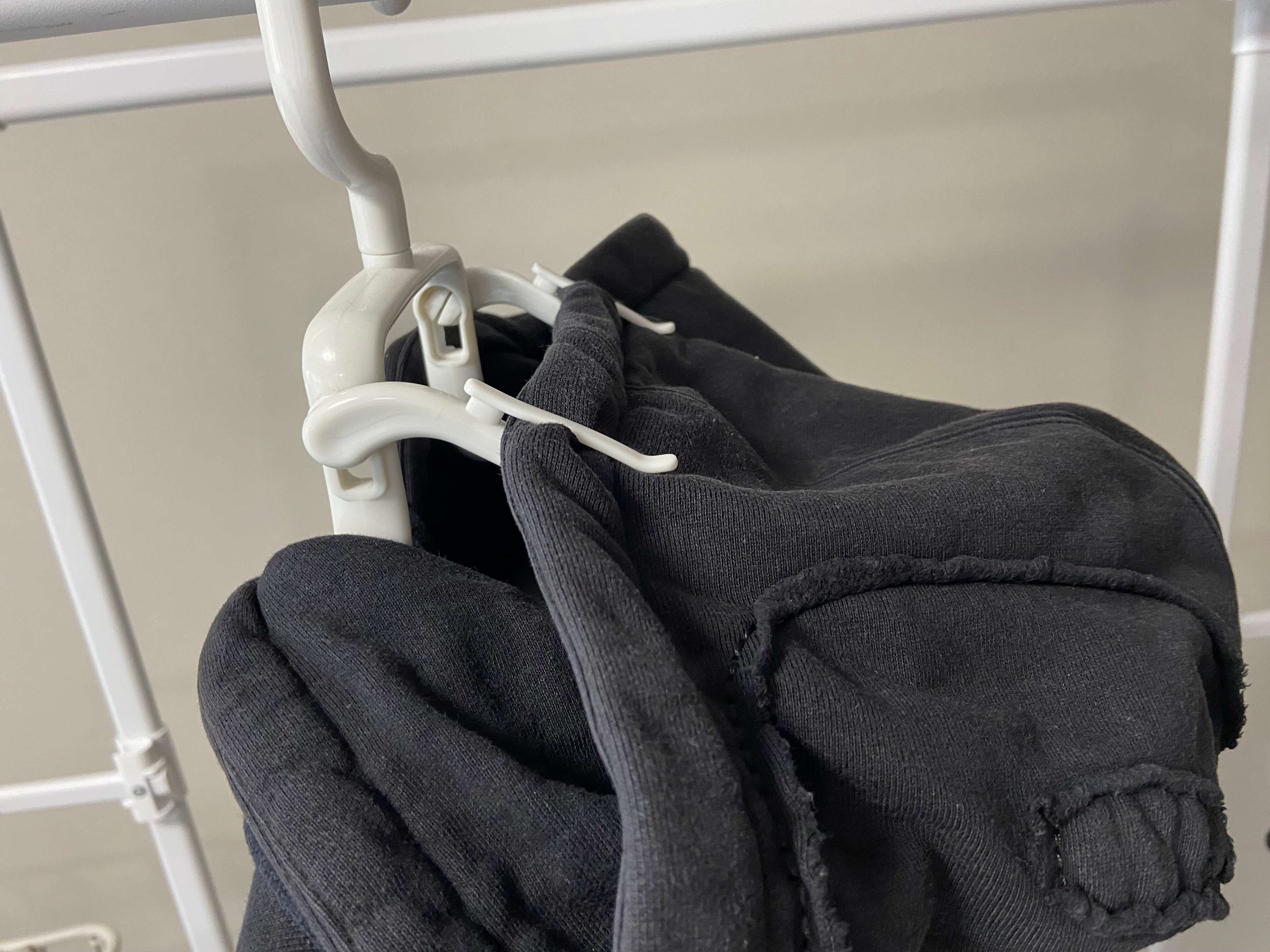 持ち上げたフードは、ハンガーに固定することができるクリップがついているので安心。横幅が広く安定感のある太さでパーカーの型崩れを防止するなど、細部までこだわっていて、330円でも決して高いとは感じません♪