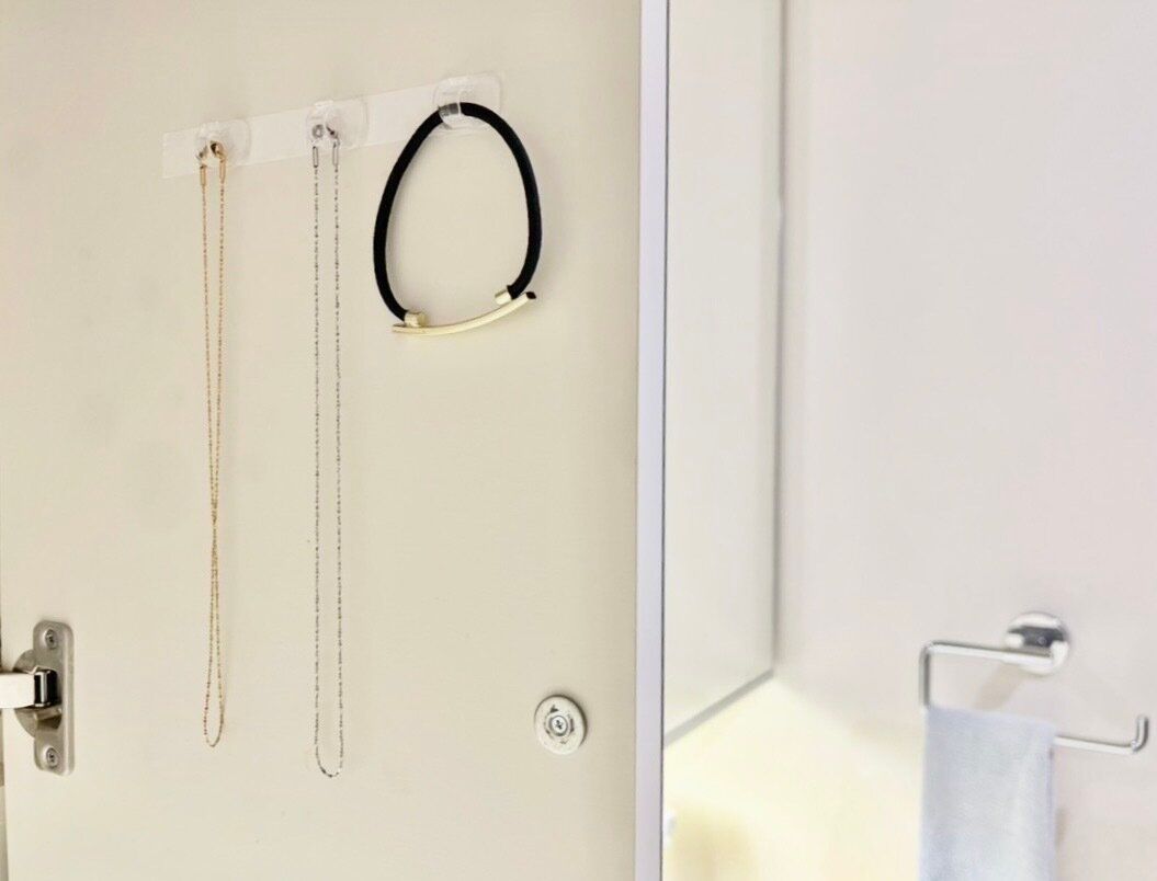 引っ掛けておけば取り出しもサッと行え、そのまま鏡ですぐチェックできるのも嬉しいポイント!