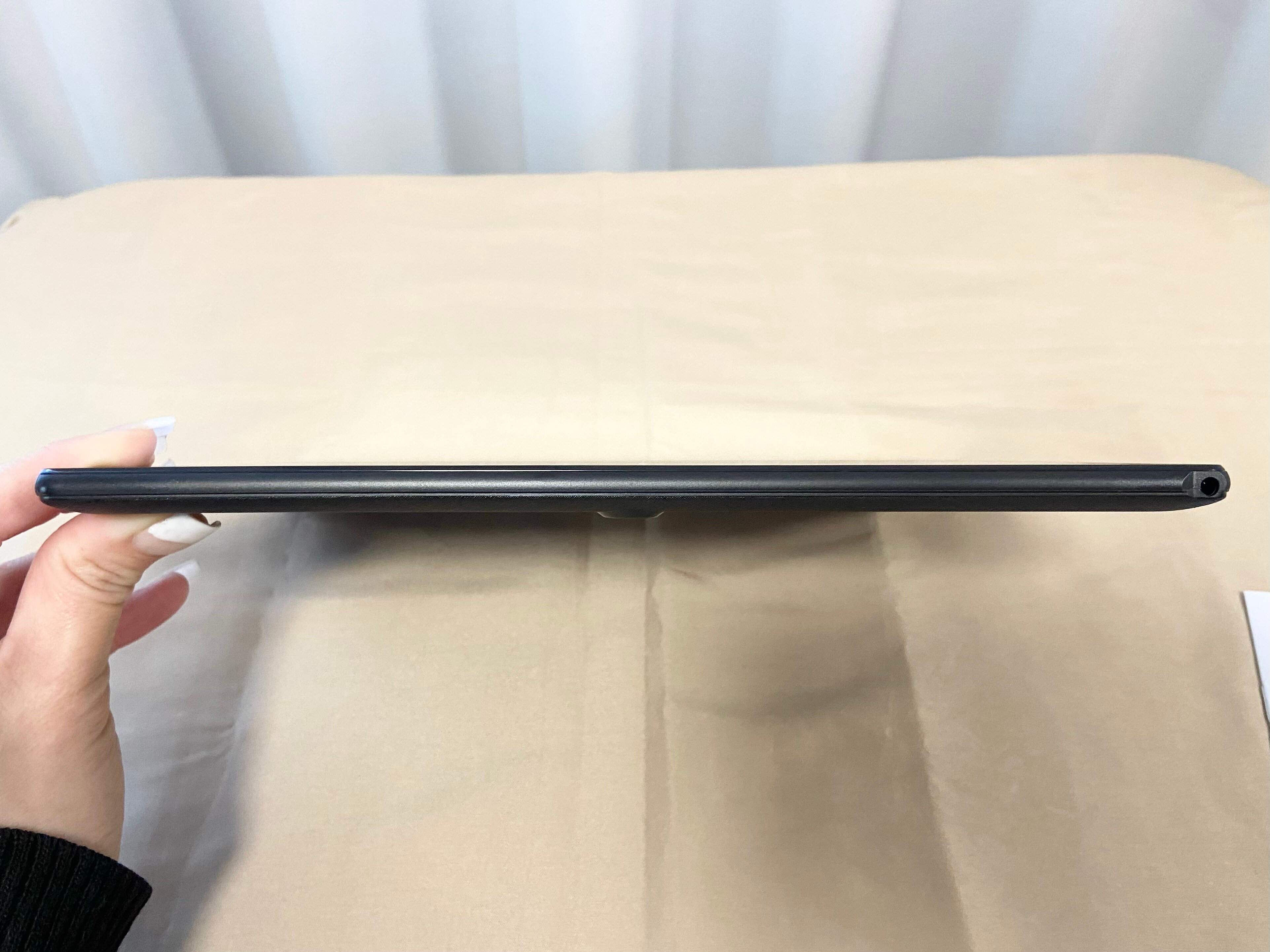一番のお気に入りのポイントは薄さと軽さ。サイズは約横243.5×縦162.2×厚さ9.6mm(※突起部を除く)、重量は約486g!現在メインに使っているChromebookよりも軽量で持ち運びしやすいのがうれしい!