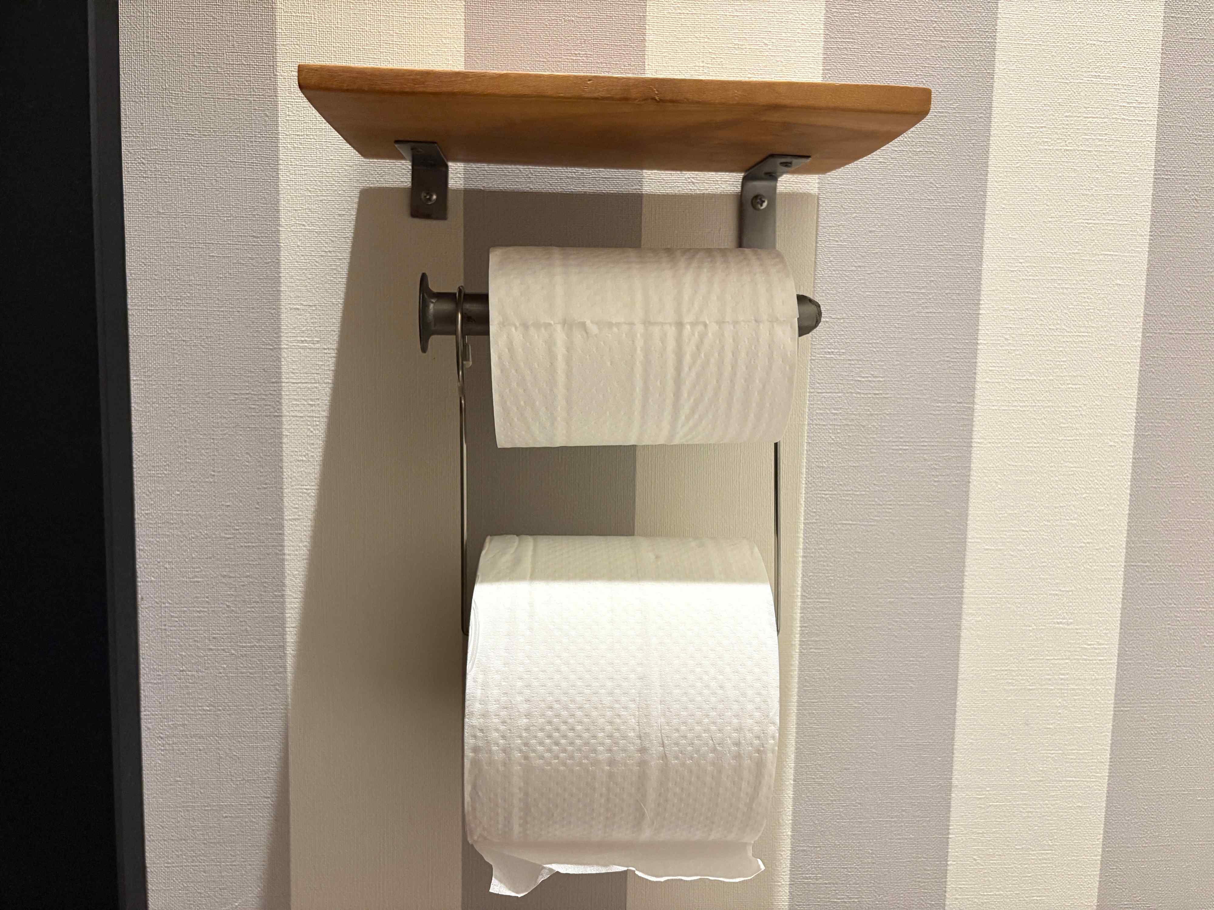 カバーをつけられないホルダーでもセットできる「トイレットペーパーストッカー」