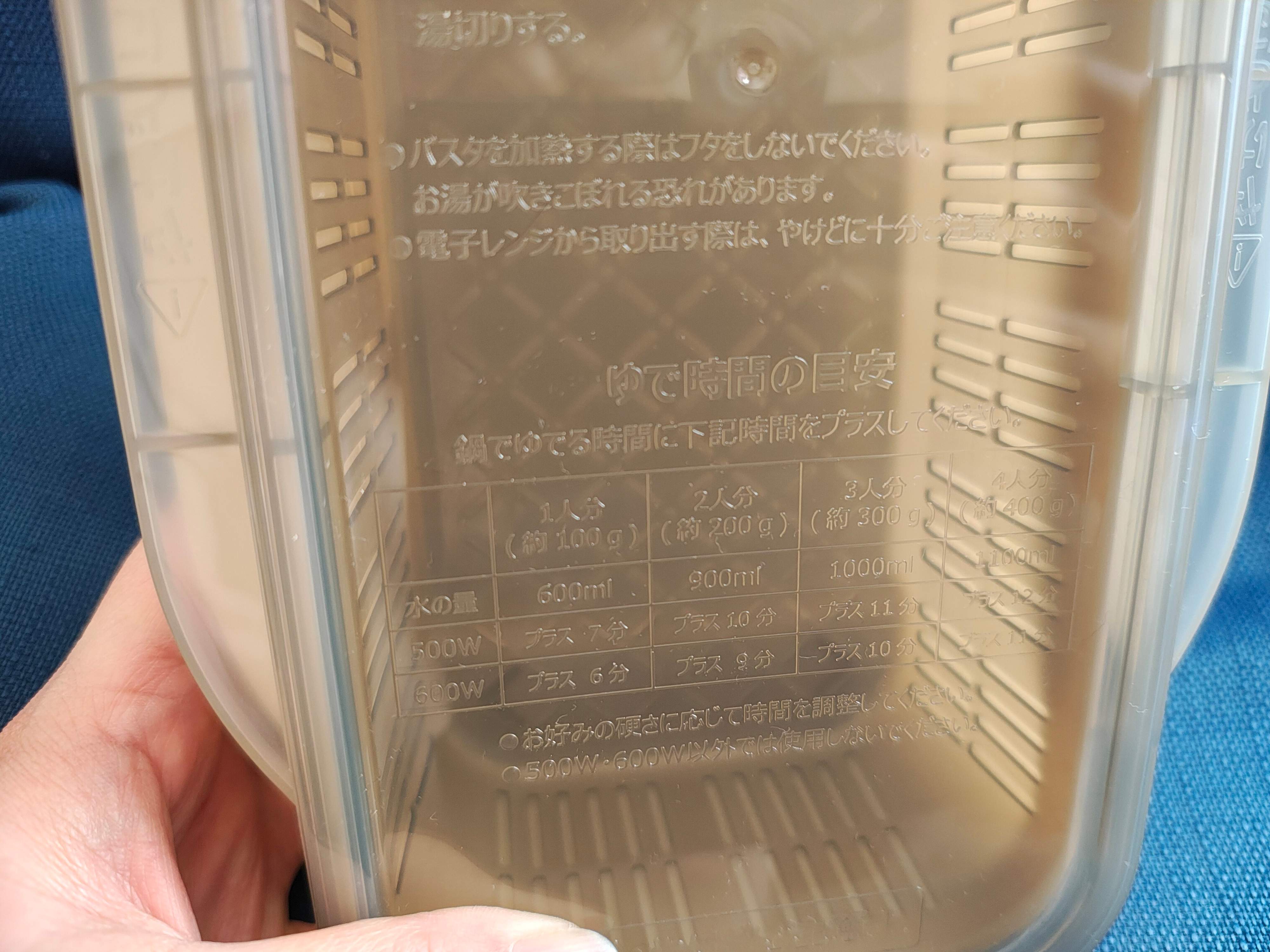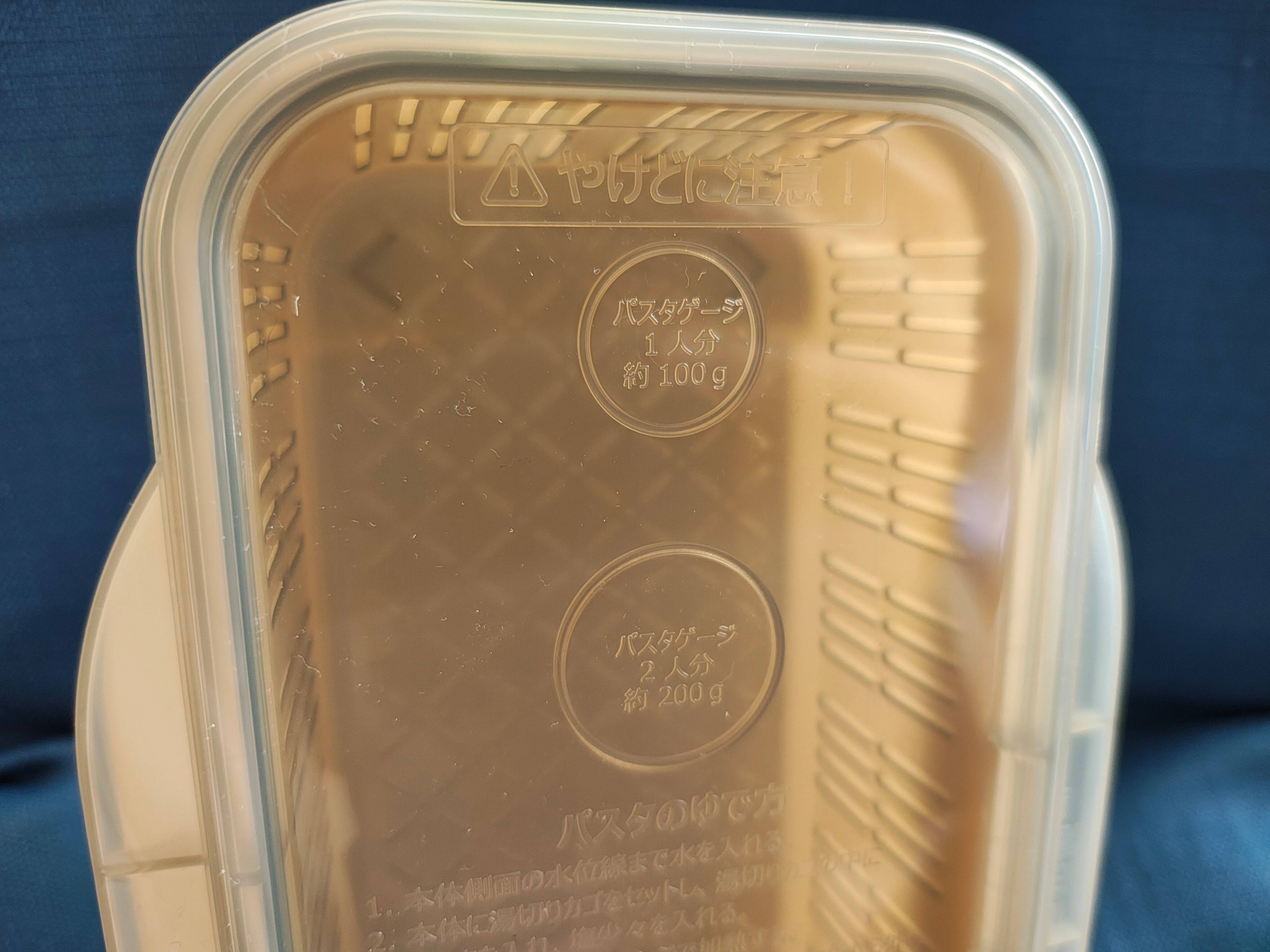 パスタメーカーのふたにパスタゲージや必要な水の量、加熱時間が書いてあってとても便利です。