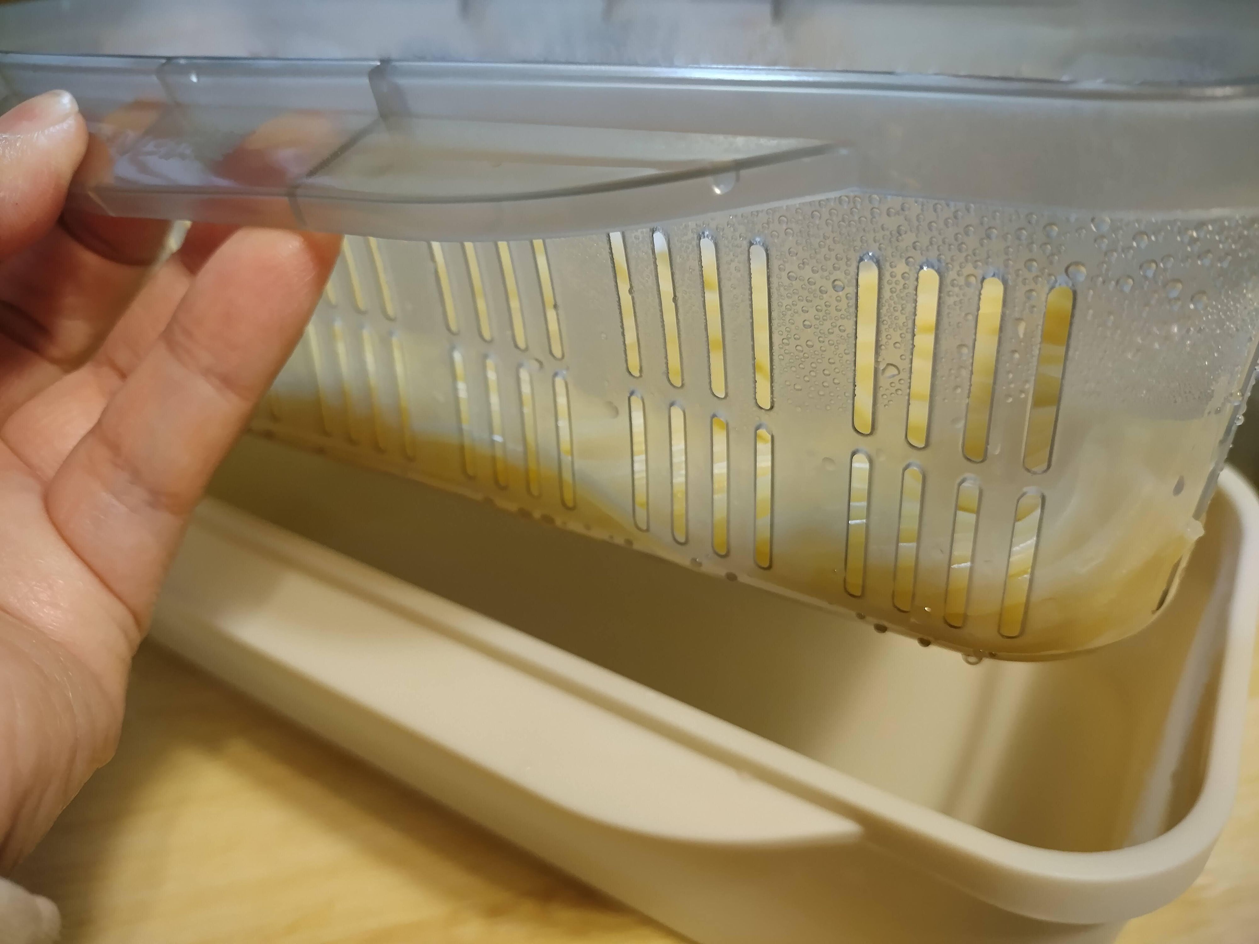 プラスチック製の湯切りかごは軽いので、湯切りも楽々。やけどのリスクも少なめです。