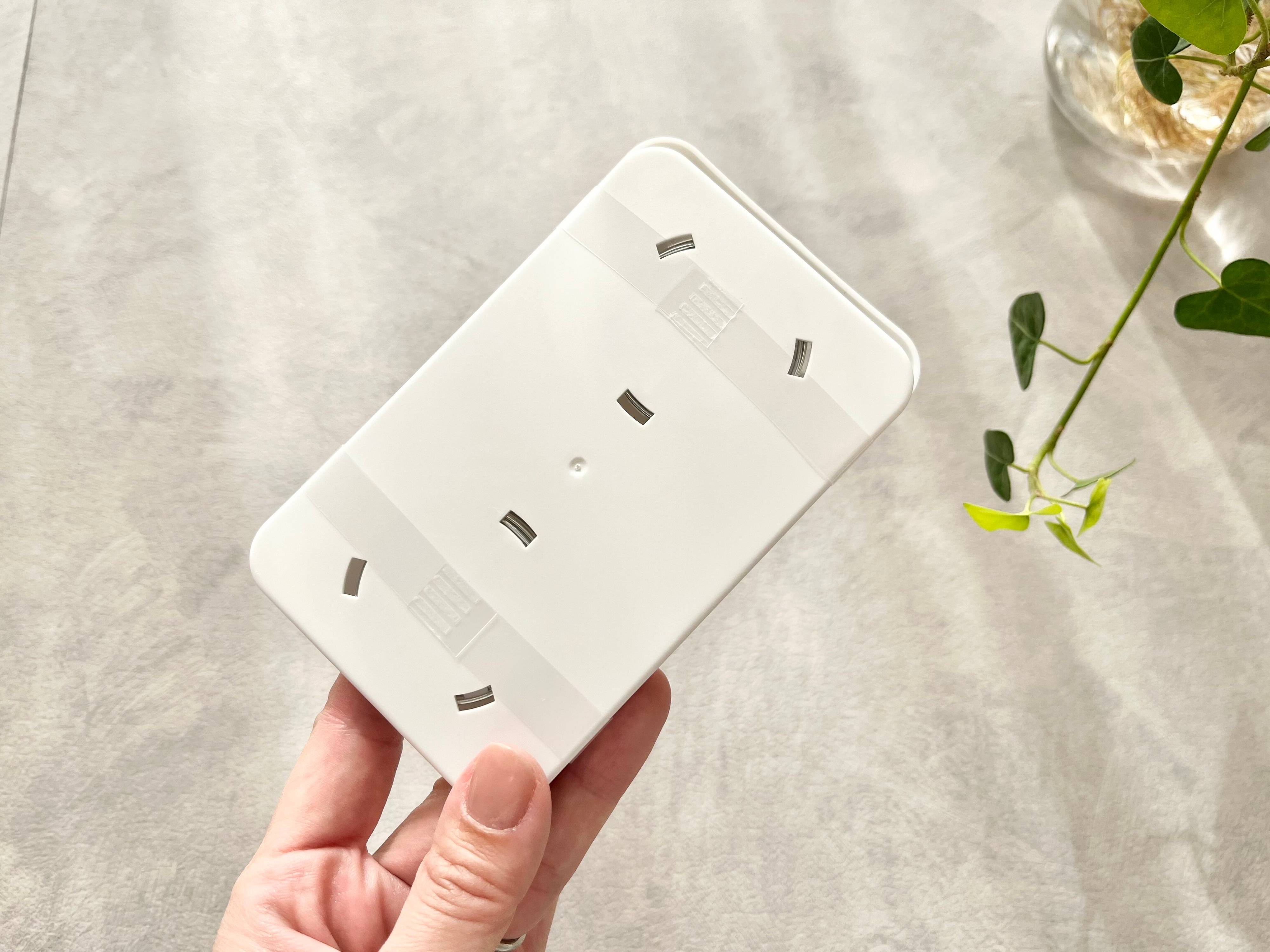 商品のサイズは、約7.5cm×11.8cm×厚み1cm。ポリプロピレンで作られたコンパクトな商品が、2個入っています。