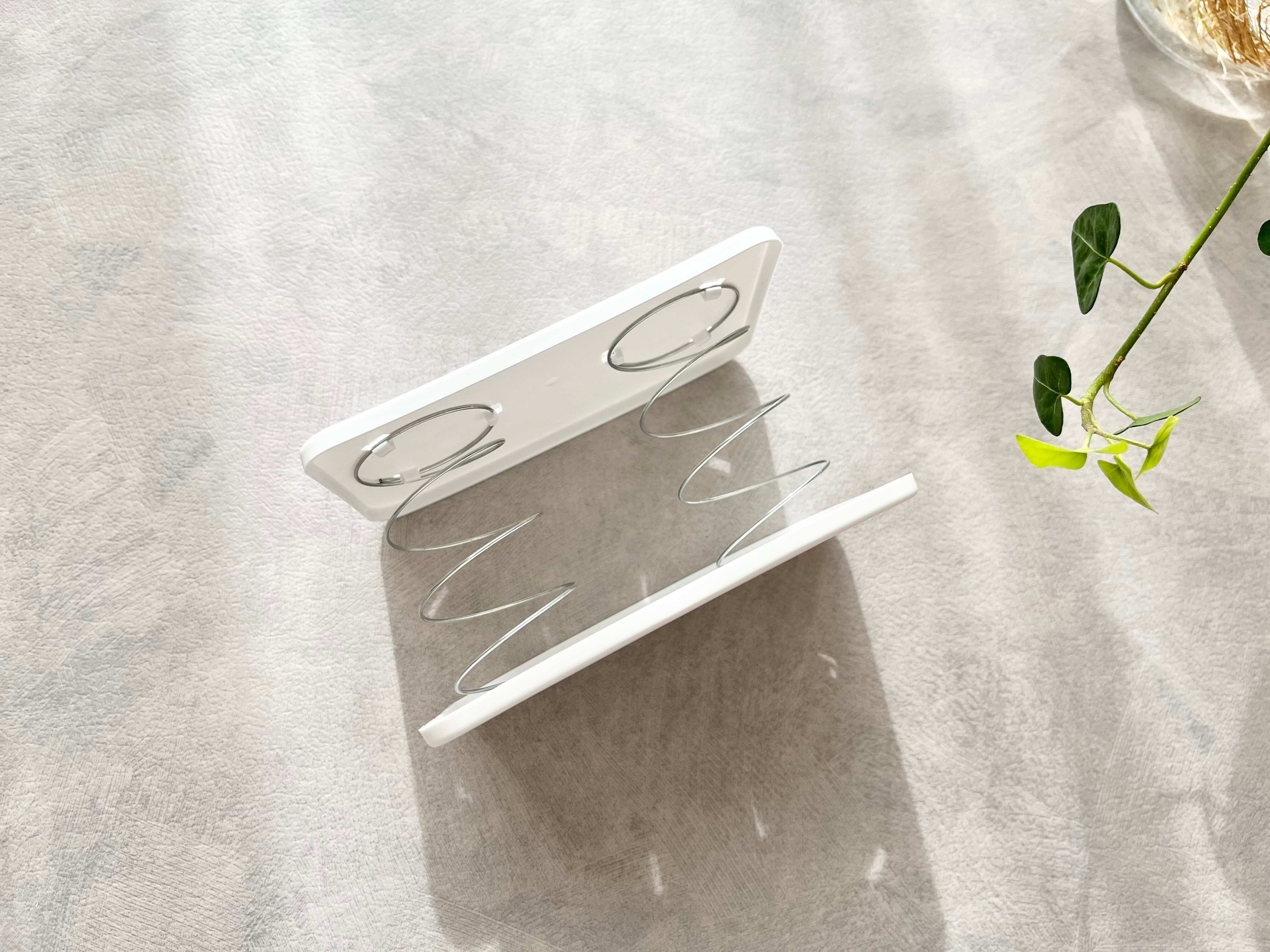梱包用のビニールを外すと、内側に付いている2本のバネが広がるようになっています。