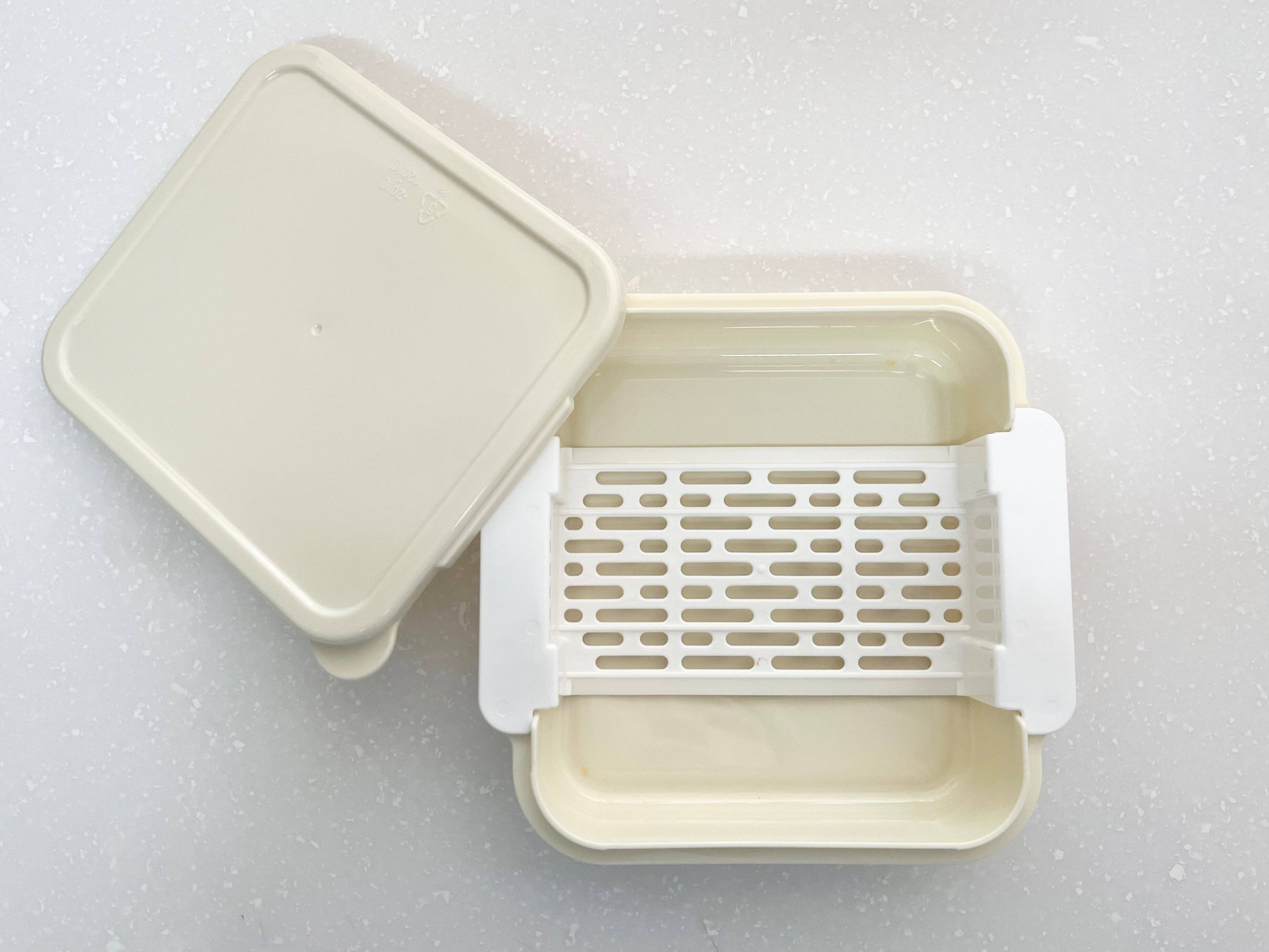 蓋を開けると普通の保存容器とは違い、中には底の部分に隙間が開いたバスケットが入っています。このバスケットがとてもいい仕事をしてくれるんですよ。