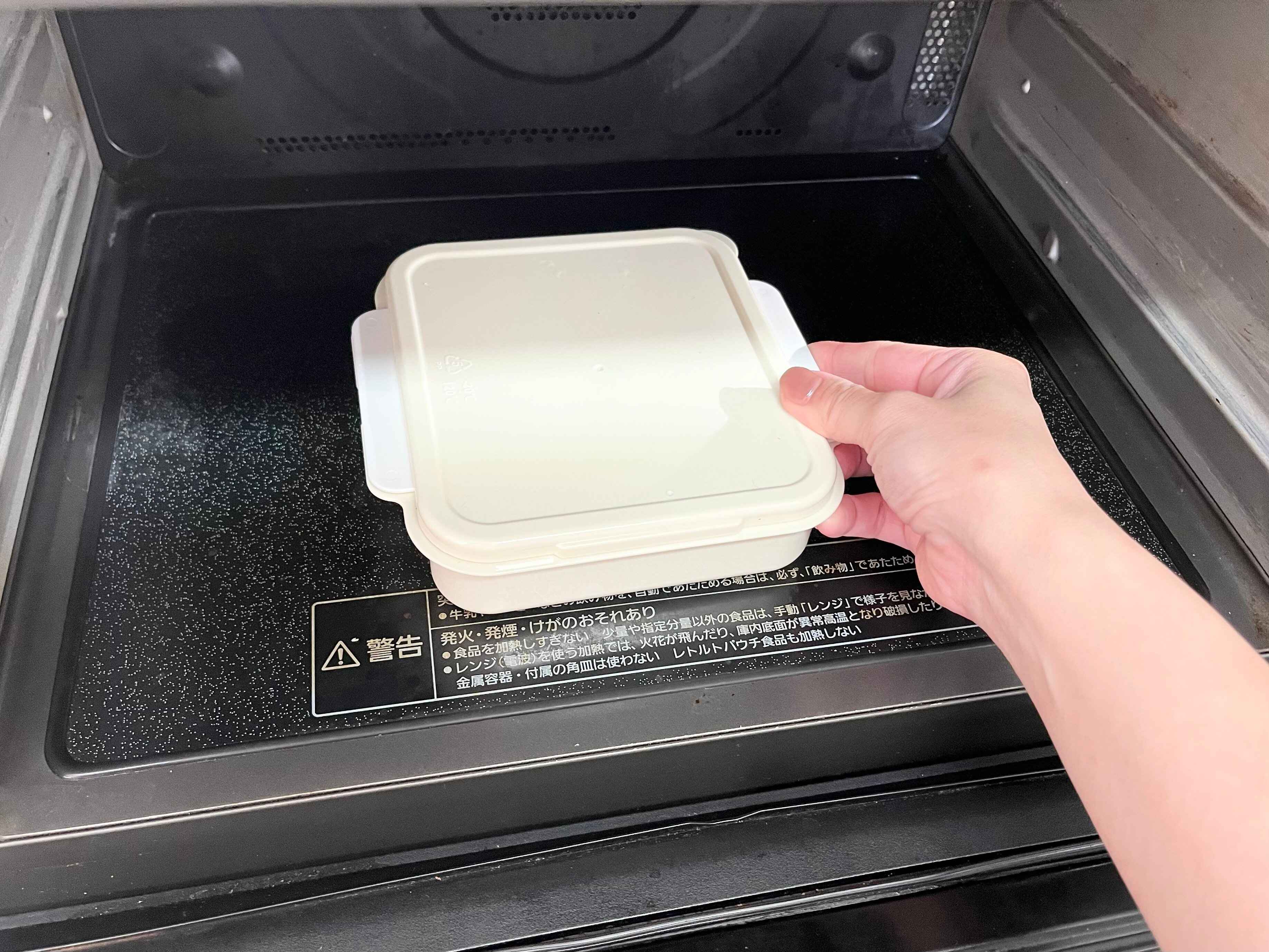 しっとり系のフレンチトーストがお好きな方は、電子レンジ調理がおすすめ。蓋を閉めて電子レンジ(500W)で約3分加熱します。