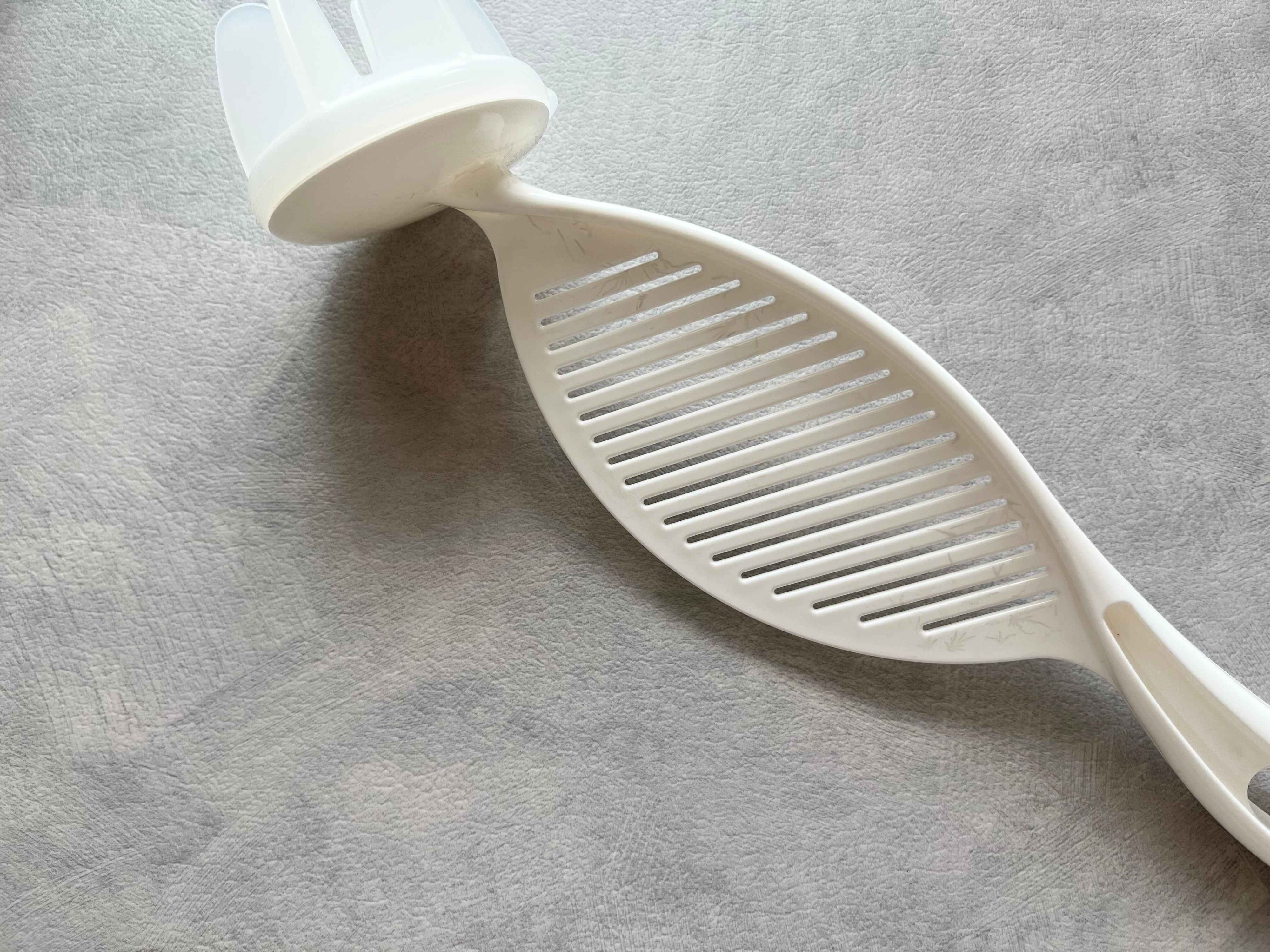 パーツは取り外せるので、使い終わったら手軽に丸洗いも可能。持ち手には穴が空いているので、吊り下げて乾かしたり収納することもできます。