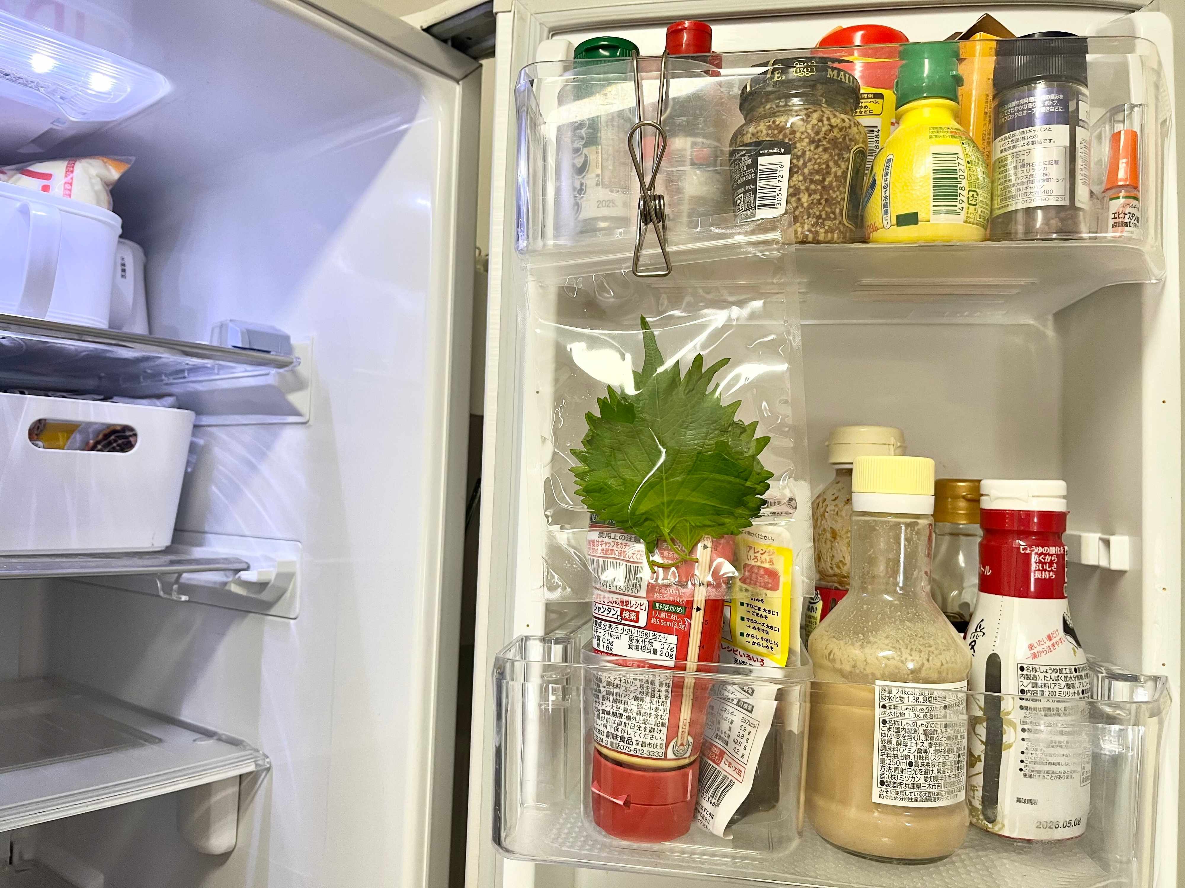 またあまり厚みがなくて軽いので、ドアポケットなどにクリップで吊り下げて保管することもできます。これなら冷蔵庫の中がいっぱいでもコンパクトだから収納しやすいし、目立つところに吊り下げておけば使い忘れを防ぐことができるので、とっても便利ですよね。