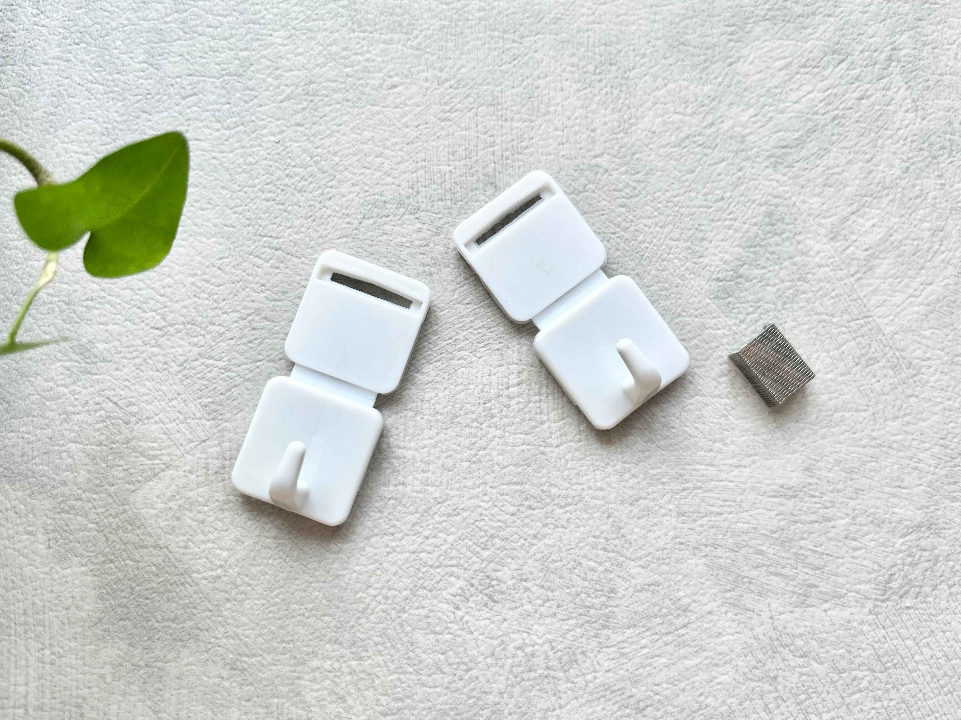 こちらの商品は、フックが2個と専用のホチキス針が25本セットになって販売されています。ホチキスはセットには入っていないので、180度開くタイプのホチキスの準備が必要です。