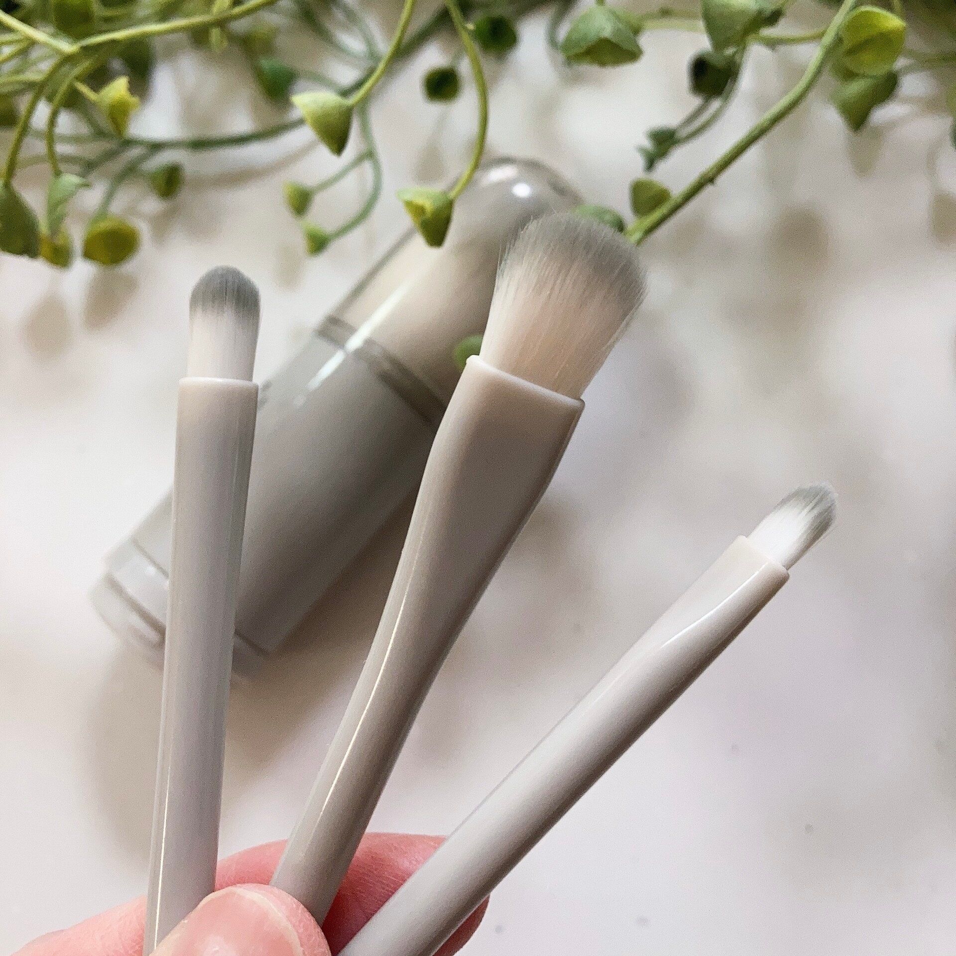 左からアイシャドウブラシ・ブレンディングブラシ・リップブラシ。