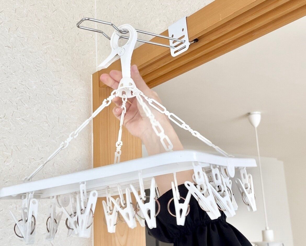 ドアや窓枠、鴨居に取り付けることで手軽に部屋干しスペースを増やせる超便利グッズです。