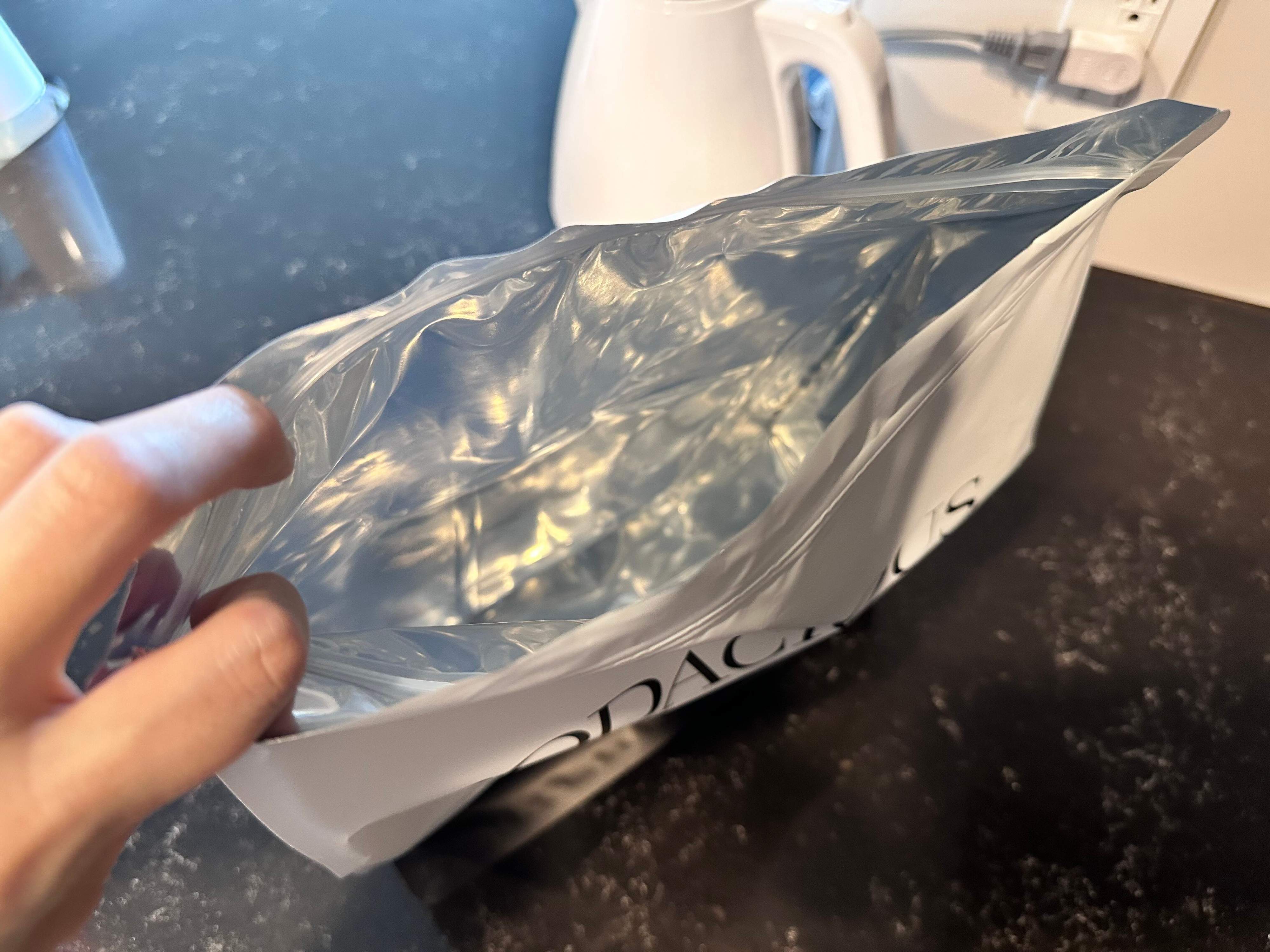 内側は酸化やにおい移り防止、風味をキープしてくれるアルミになっています。直接食品が入れられるようになっていますよ。
