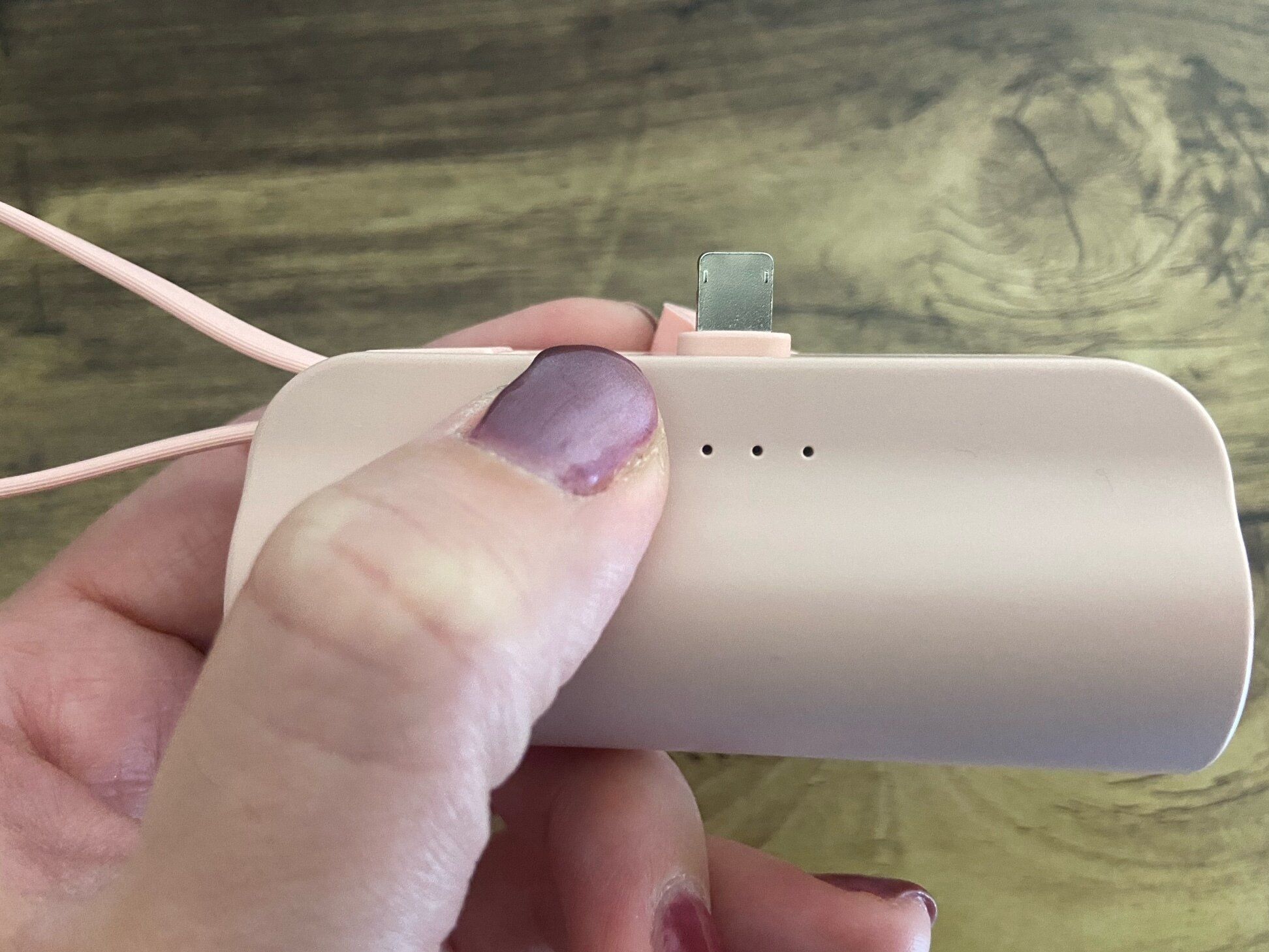 待望の新商品といっても過言ではない直挿しタイプのモバイルバッテリー。筆者はiphoneユーザーなので「ライトニングモバイルバッテリー」(2,200円)を購入しました。「タイプCモバイルバッテリー」バージョンも販売されているので、使用しているスマートフォンに合わせて選べます。カラーはピンクとホワイトの2色展開です。