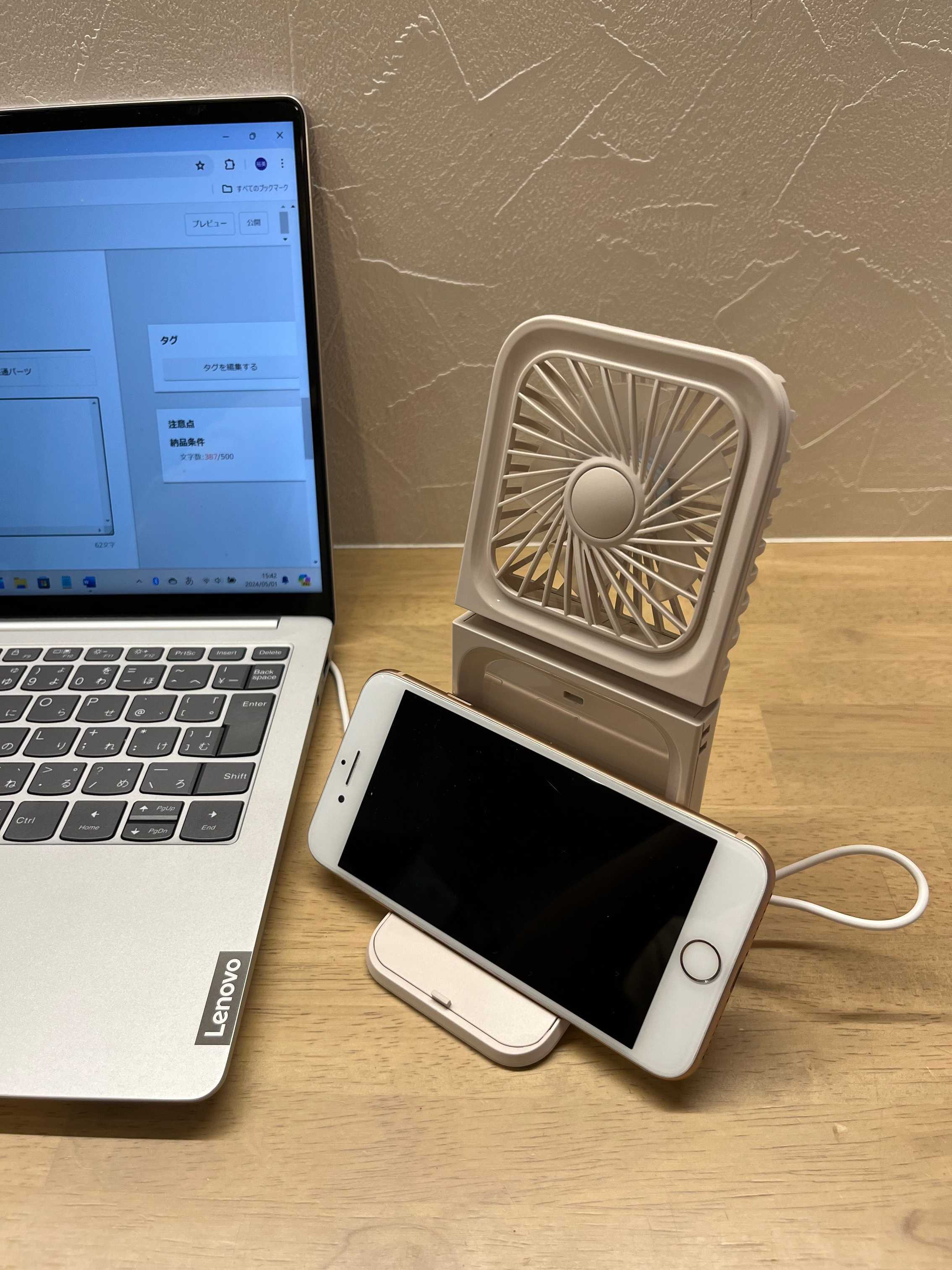 パソコンの横にハンディファンを置けば涼しい風に当たりながら仕事が出来ます。