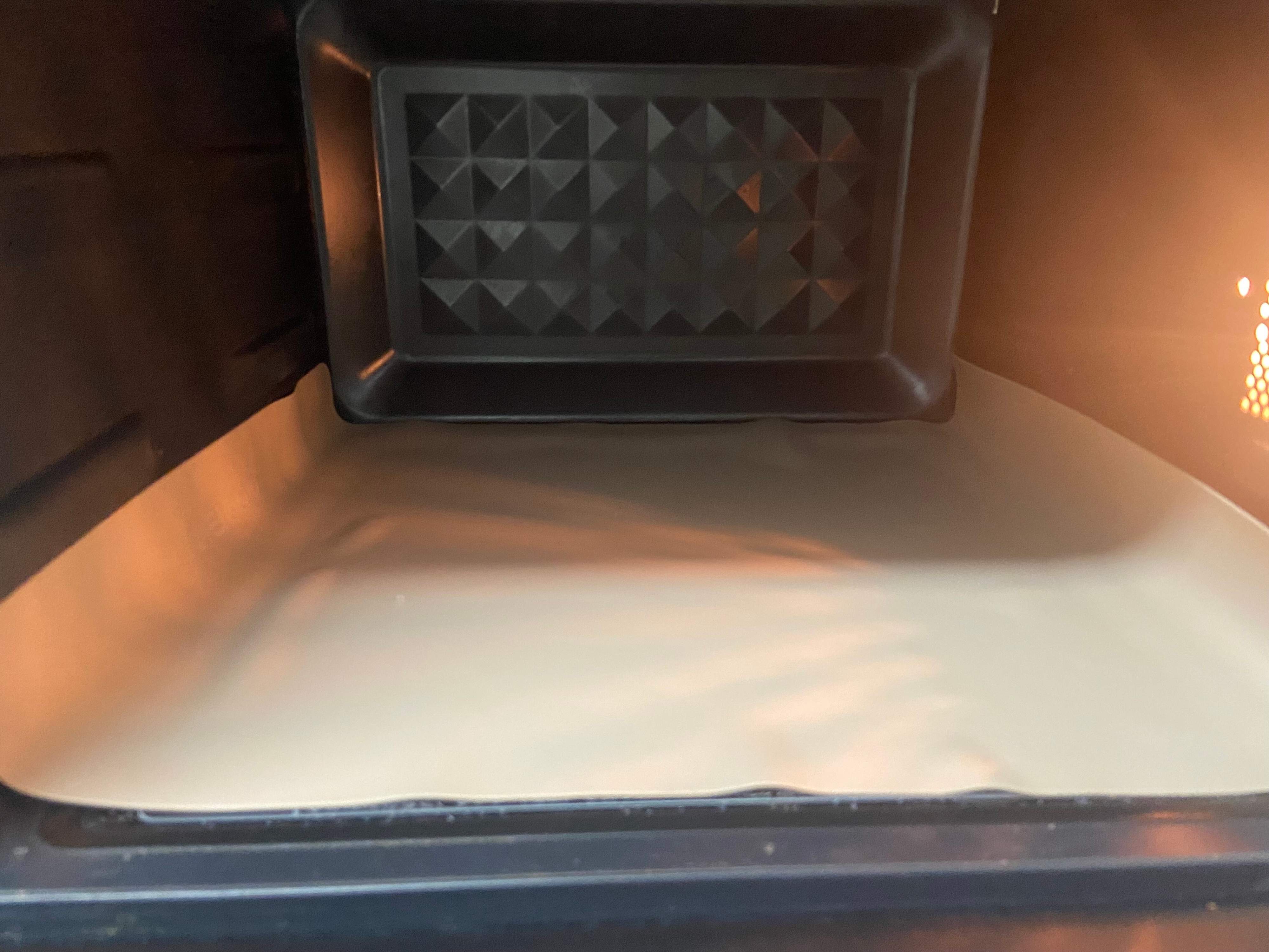 ※写真はサイズ感が分かりやすいようにカットしていない状態ですが、使用するときは電子レンジに合わせてカットして使用しています。