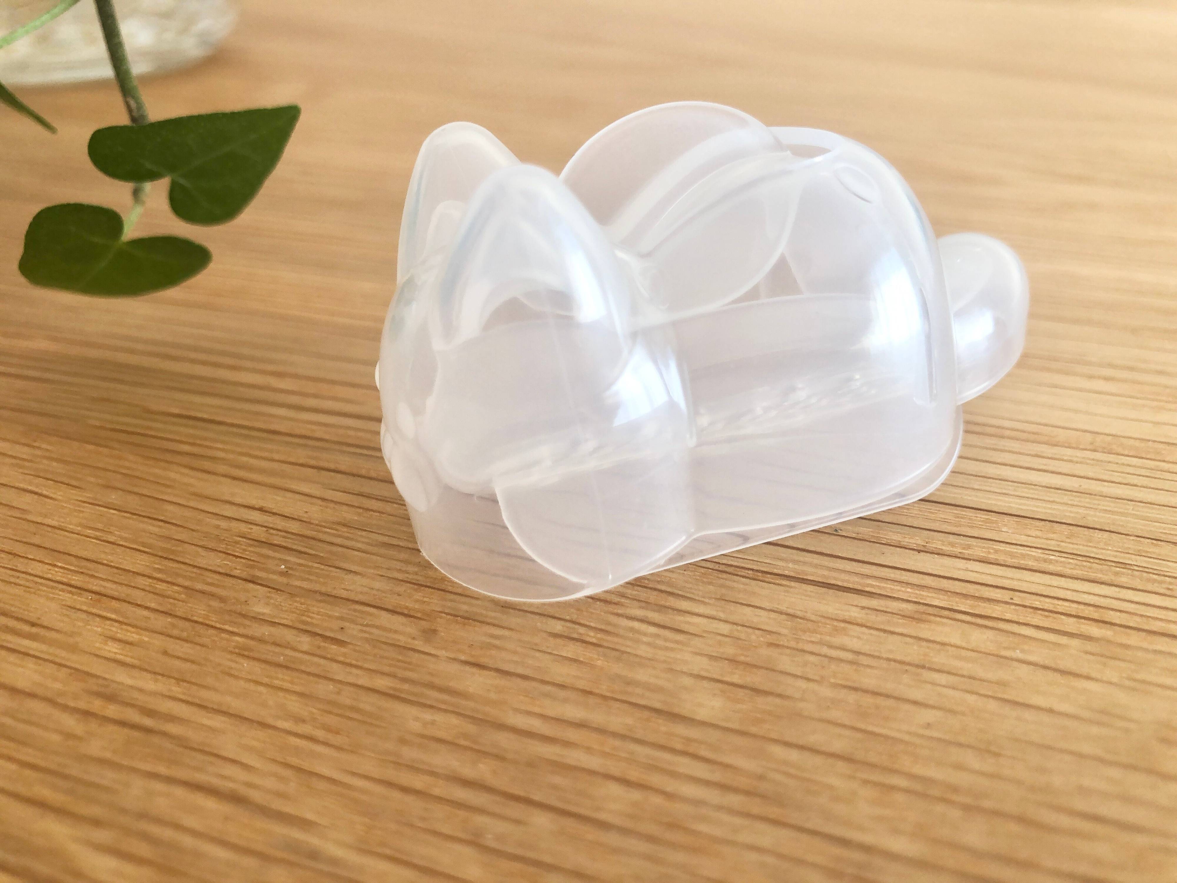 使い方は、封を開けると猫のデザインの大根おろし型が入っているので、本体・中敷き・押し具の3つパーツにわけます。