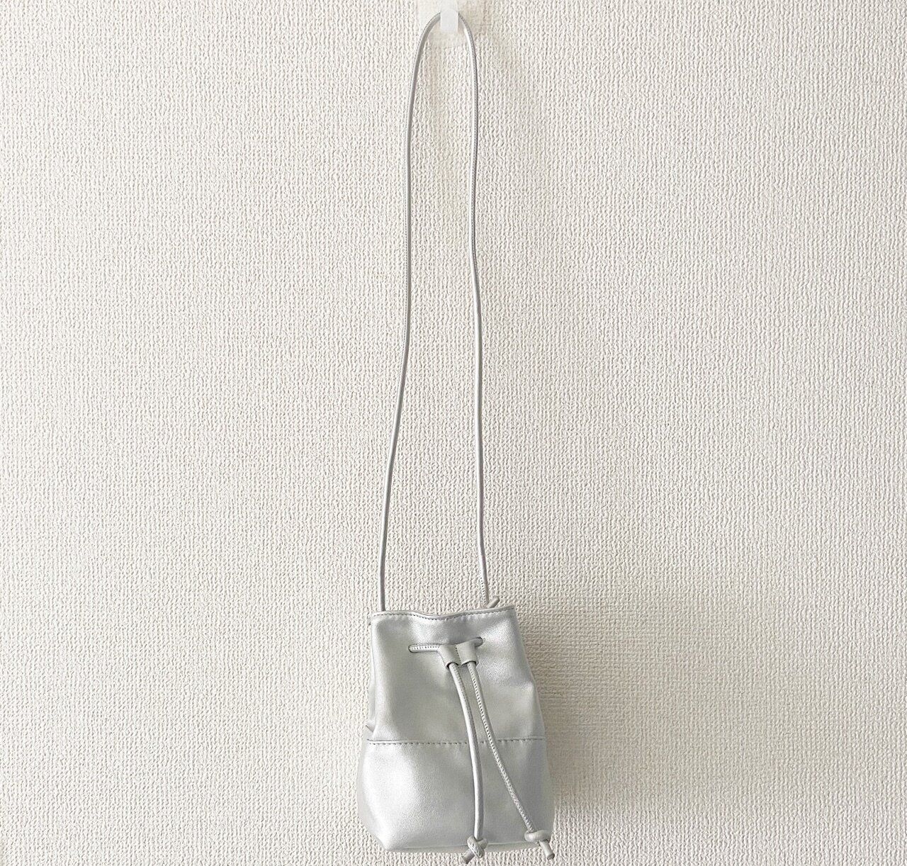 「バゲットショルダーバッグ」(880円)は1,000円以下で購入できるトレンド感満載のバッグ。カラーはシルバー・ブラック・アイボリーの3色展開で発売されています。3色の中でも特におすすめなのが筆者も購入したシルバー。シルバーの小物は昨年からずっと人気でこの春も注目のアイテム。トレンドアイテムもプチプライスならチャレンジしやすいですよね。