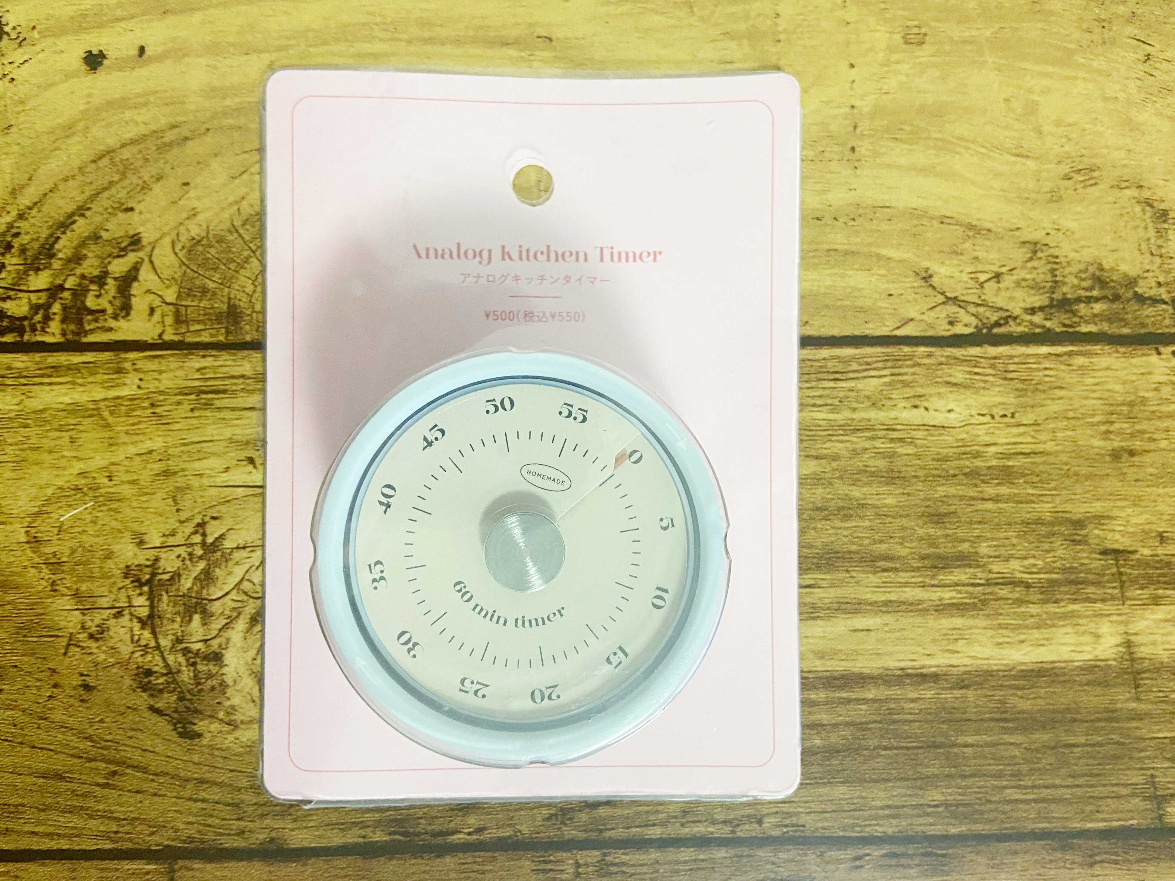「アナログキッチンタイマー」(550円)は、インスタグラマーとして活躍している3COINSの店員さんたちがこぞっておすすめしてる注目のキッチンアイテム。お菓子作りはもちろん、ふだんのお料理にも活躍してくれるので筆者もさっそく購入してみました。