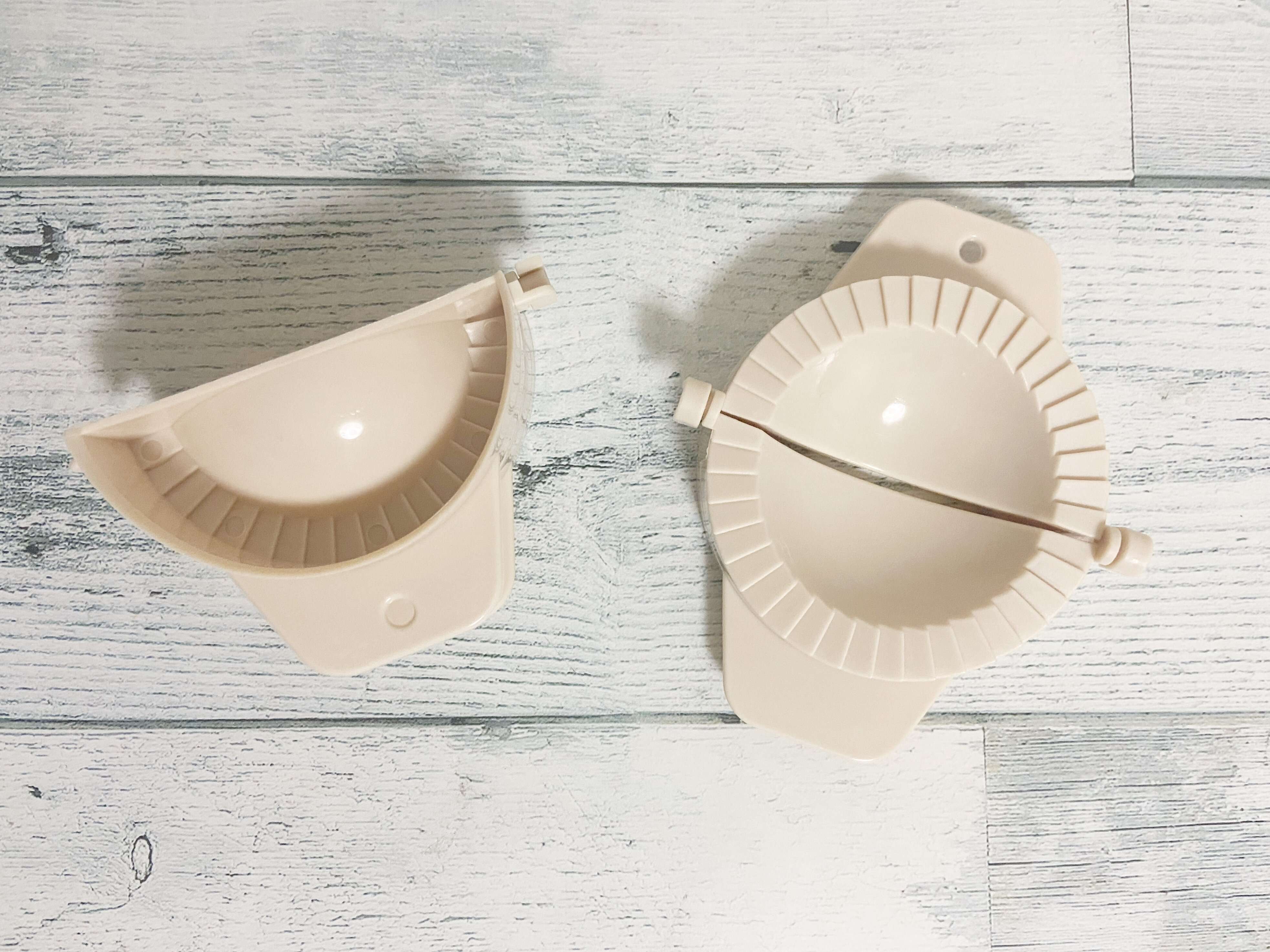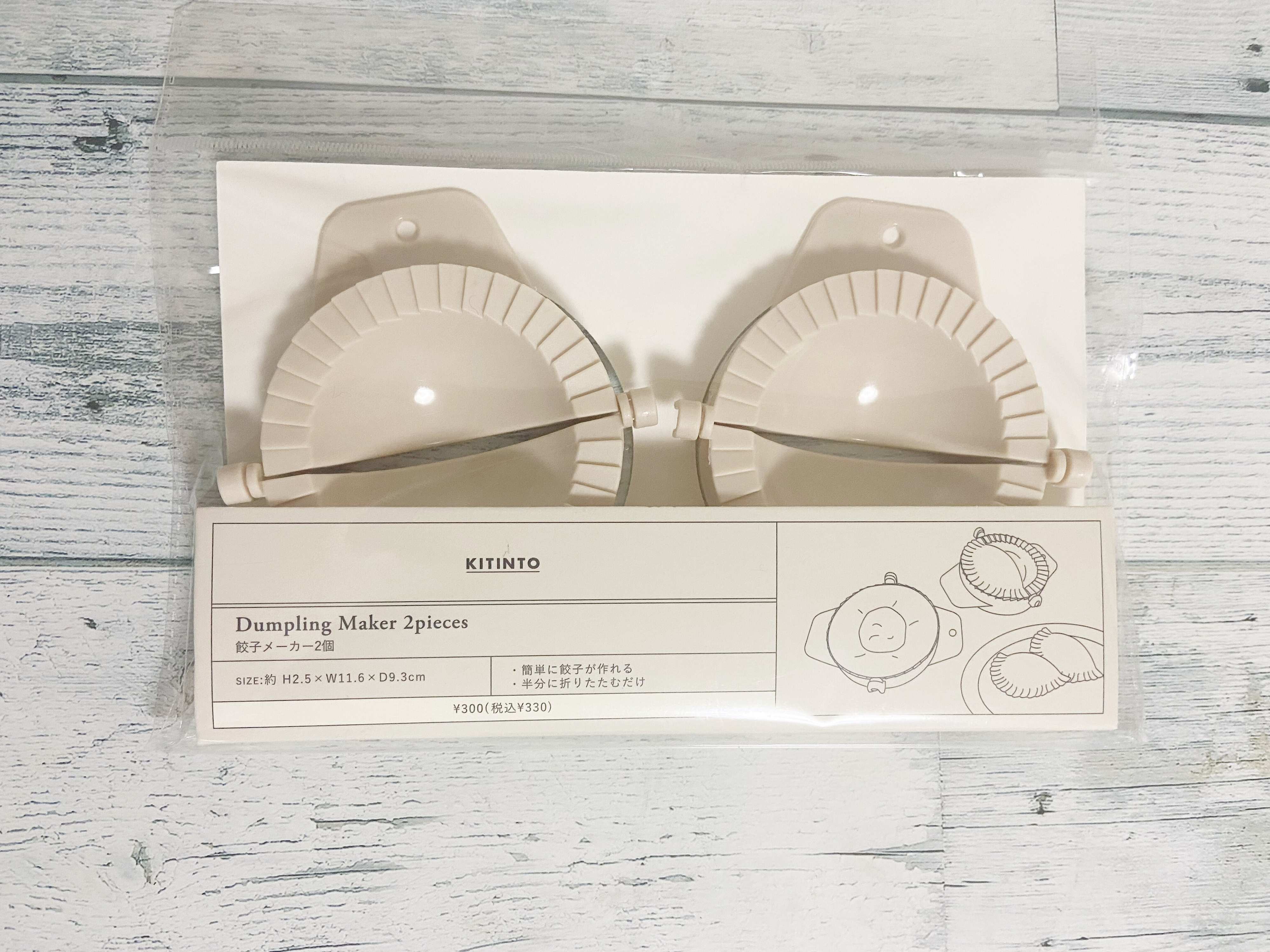 「餃子メーカー 2個」(330円)はその名の通り、餃子を作るためのキッチンアイテム。簡単に餃子を包むことが出来る便利な調理アイテムで、餃子を包むのが苦手な人はもちろん、子どもでも簡単に均等に餃子を包むことが出来ます。