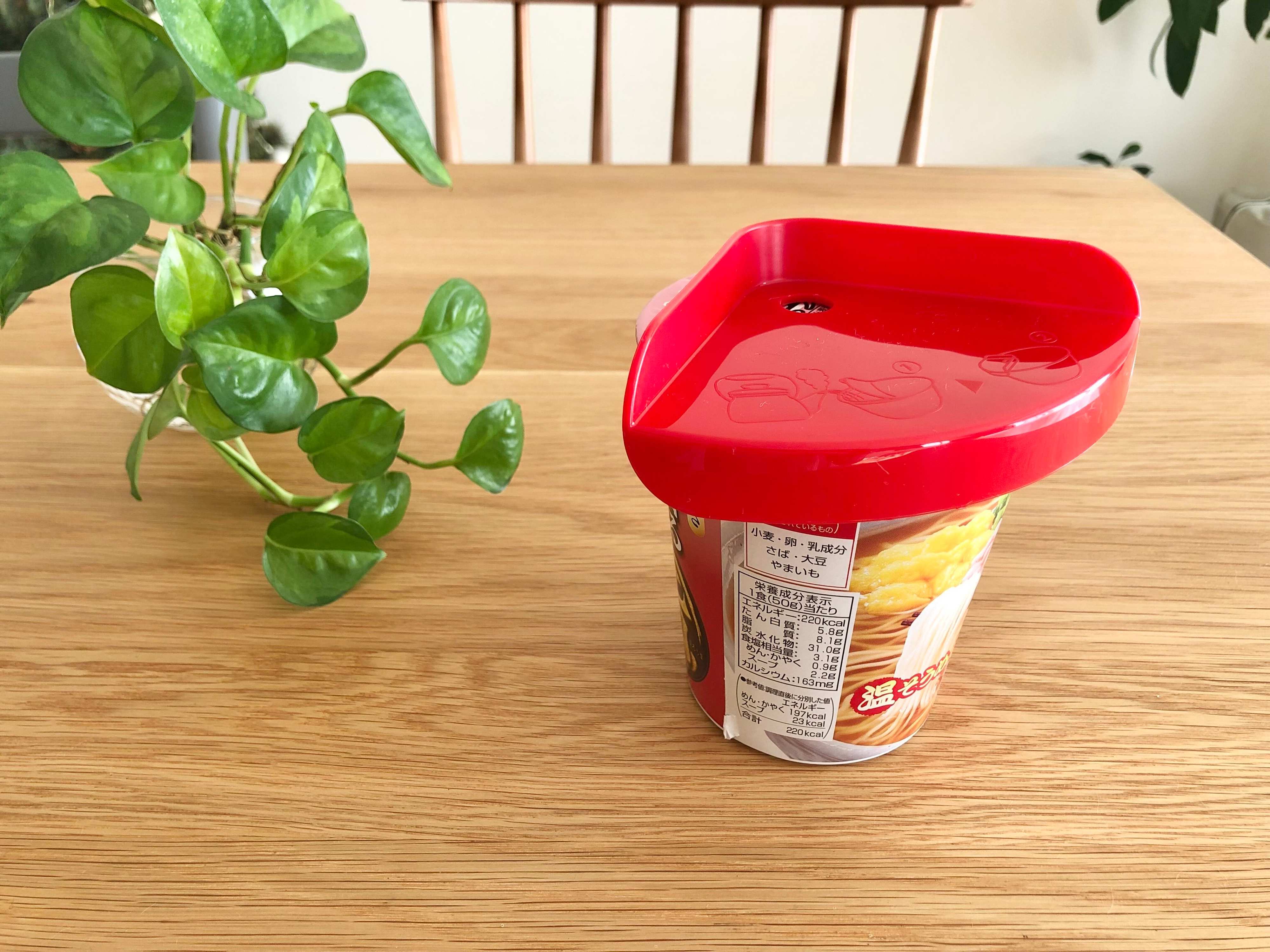 カップ麺にお湯を注いだ後、カップ麺のふたの上にポンっと置くだけでOKなんですよ。