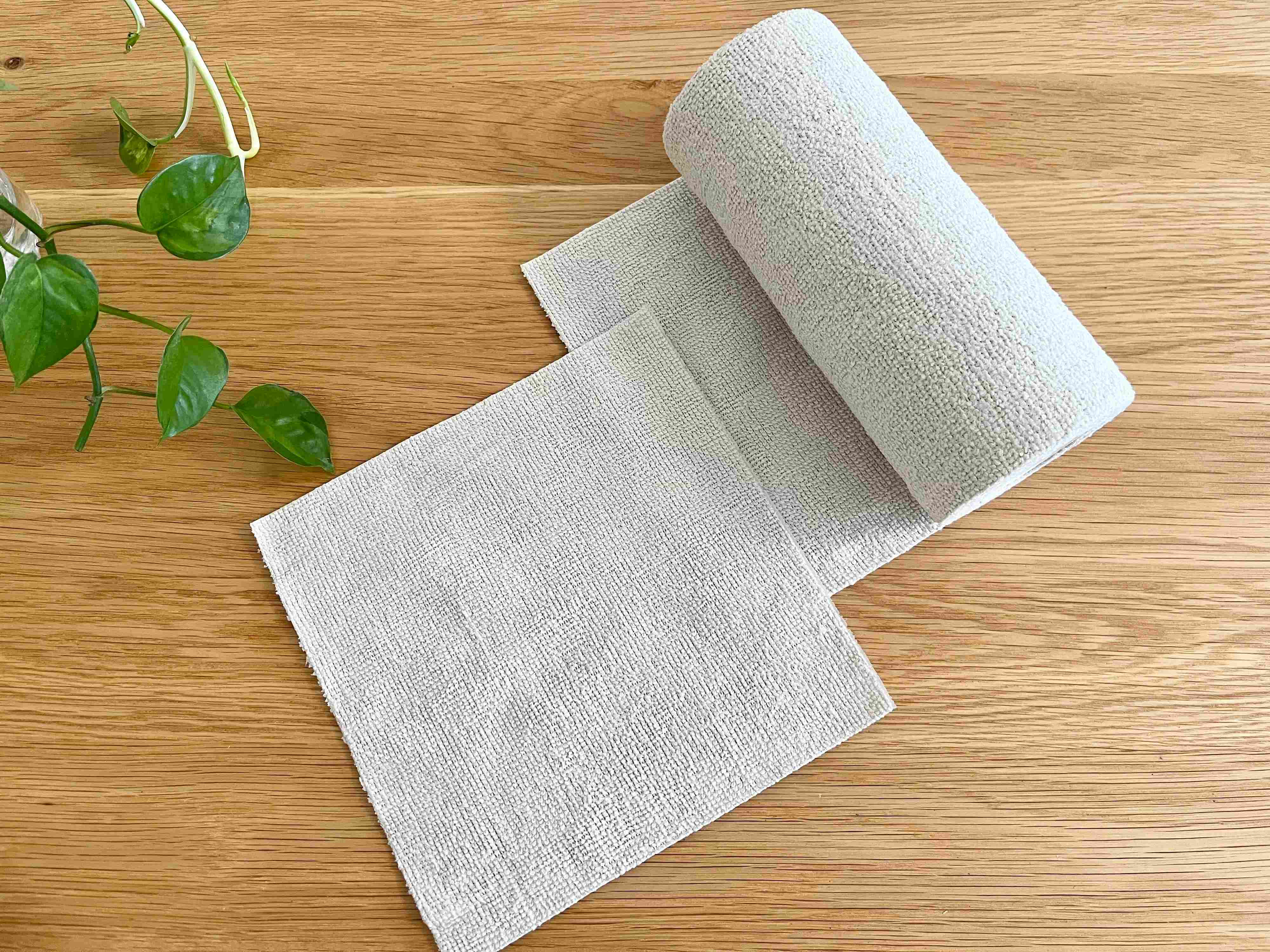 「マイクロファイバーロールふきん」は、速乾性や吸水性に優れ、家中のあらゆる場所のお掃除にマルチに使えるのが魅力です。乾拭きする時は細かい埃をしっかりキャッチしてくれ、濡らして拭き掃除をする時は水だけでもしっかり汚れを拭き取ることができる、まさに万能ふきん!