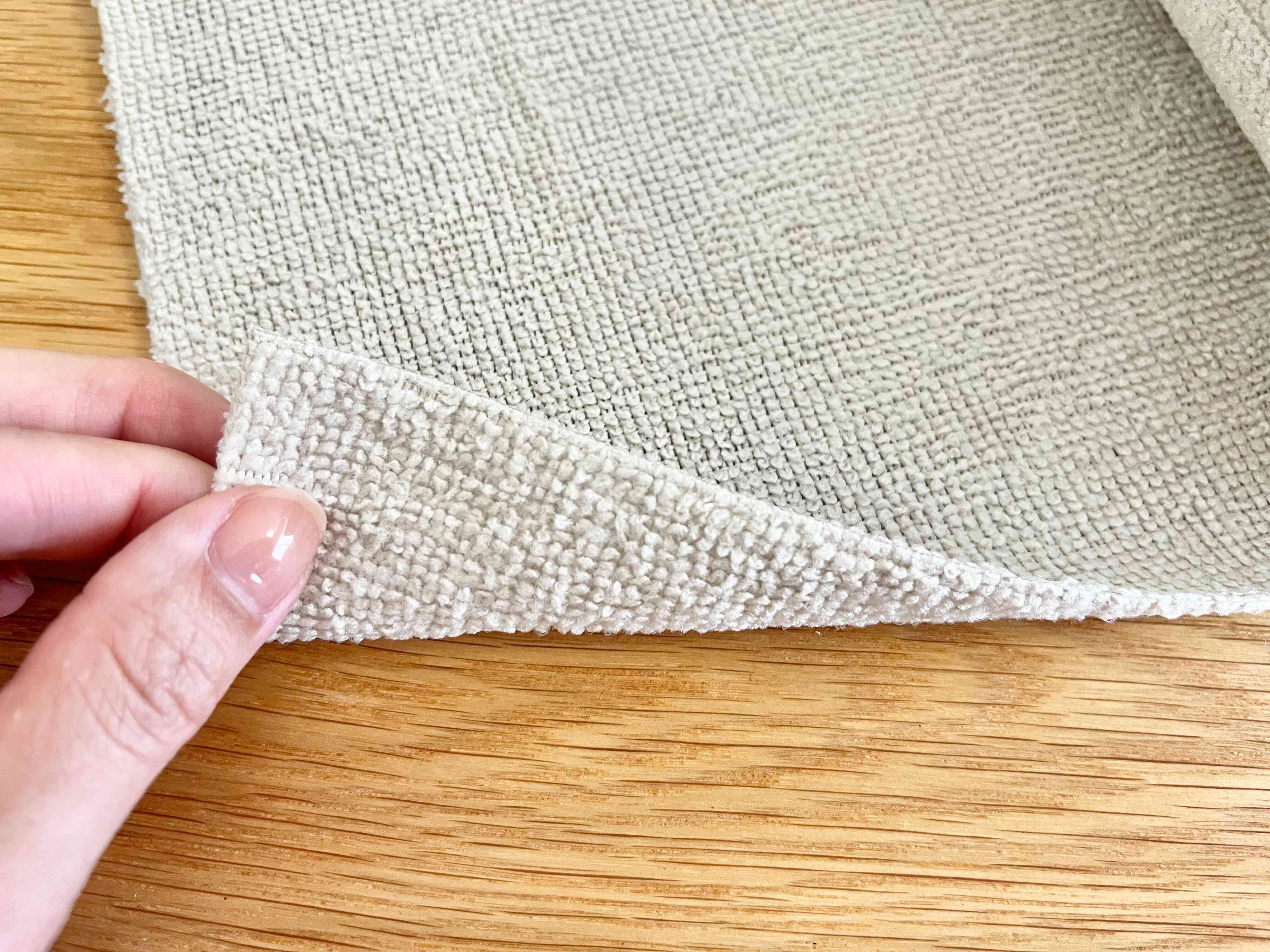 生地はポリエステルとナイロンを使用していて、ふんわり柔らかい肌触り。使い捨ての商品ですが、厚みがあるので洗えば何度も繰り返し使うことができます。