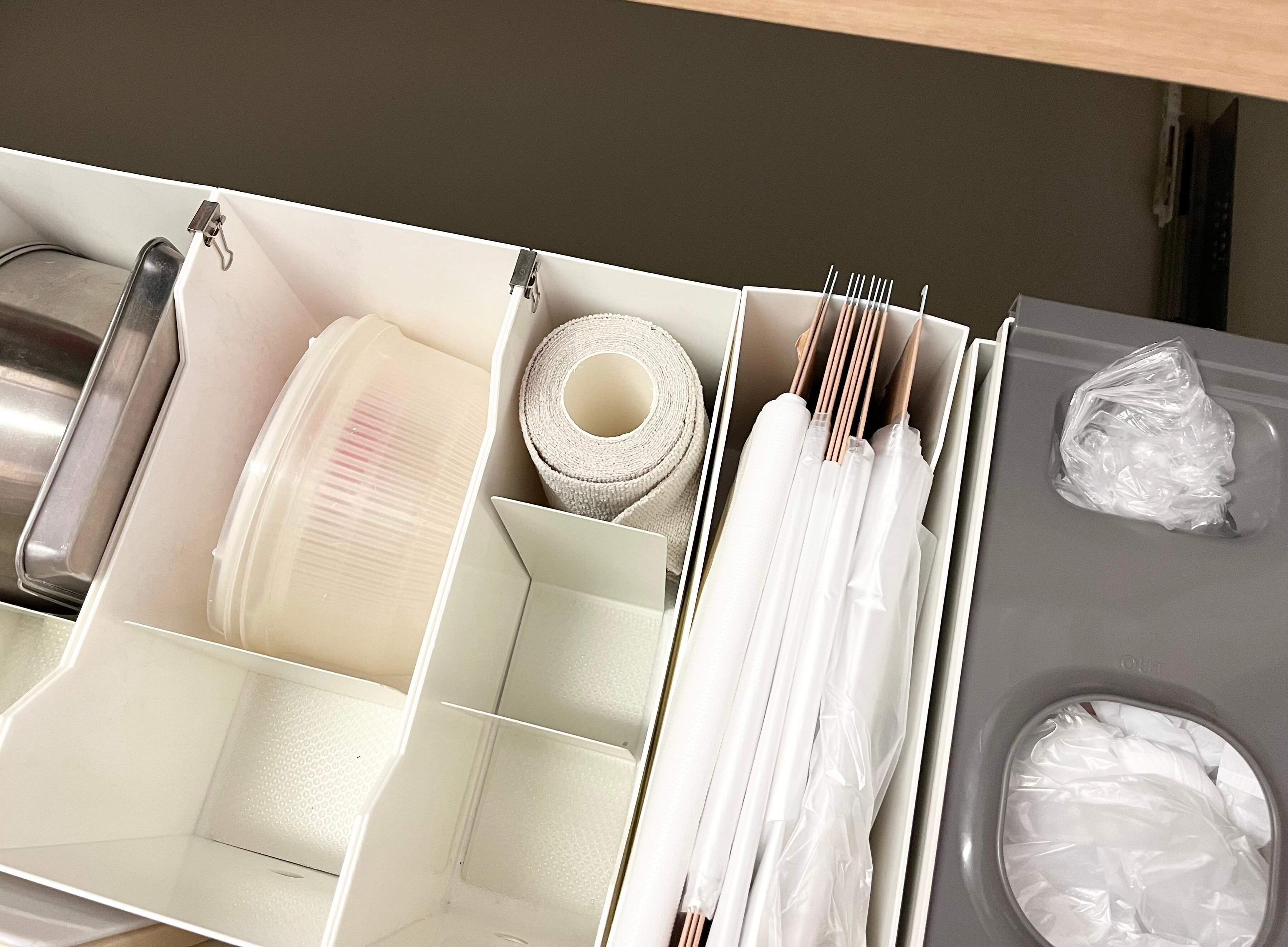 「マイクロファイバーロールふきん」のもう1つの魅力は、ロールタイプなので置き場所に困りにくいというところです。キッチンペーパーホルダーを使用すれば、使いやすい場所に手軽に置くことができます。引き出しなどに入れておく必要がないので、ワンアクションでサッと手に取れるので作業効率も上がります。