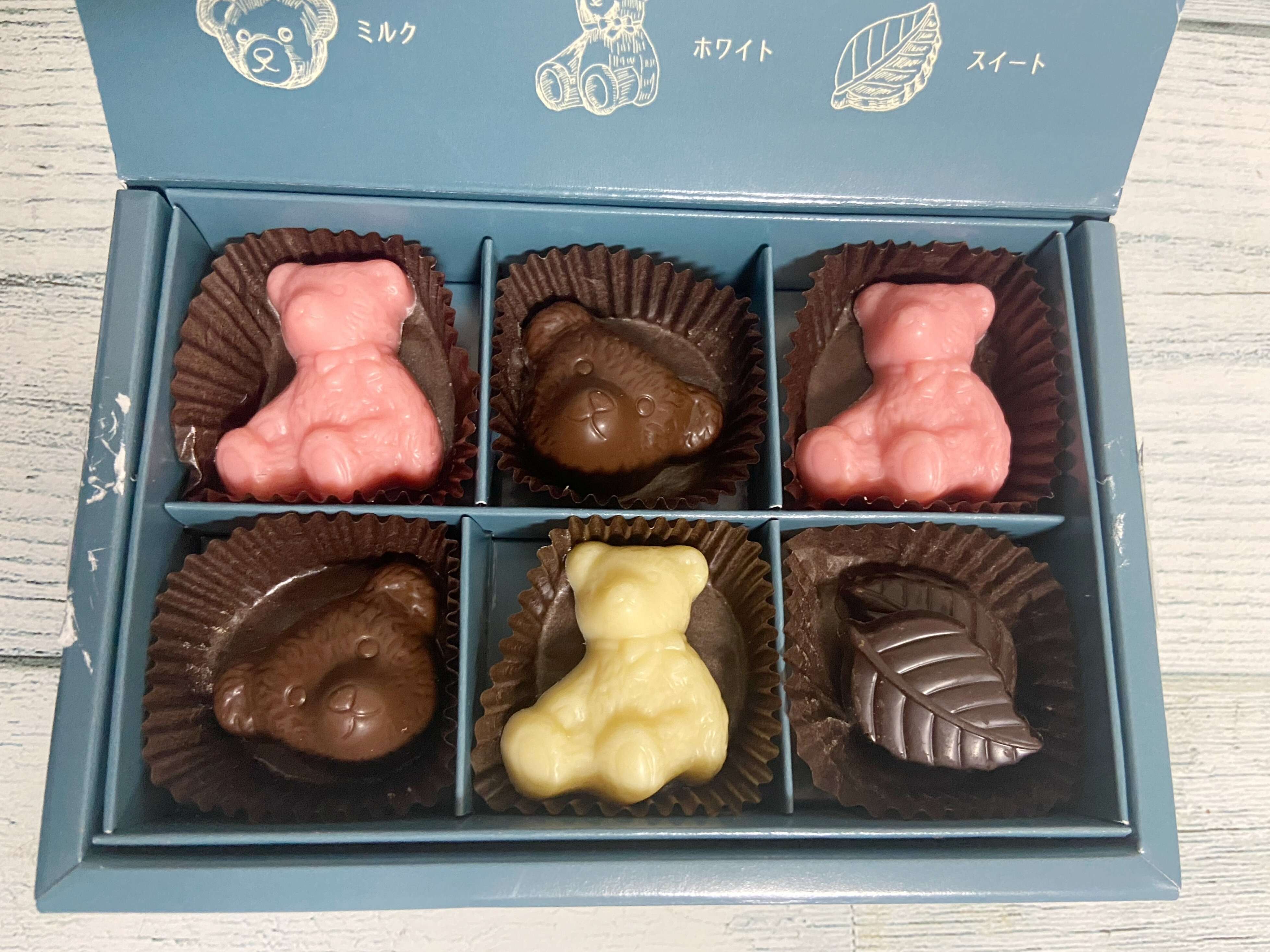 今回筆者は購入しなかったのですが、同シリーズ「ギフトチョコレート アソート」(1,080円)も発売中!ギフトチョコレート アソートもベアー・カフェ・洋酒の3パターン展開。チョコレートは12個入りです。大勢で集まるときなどにもピッタリです。