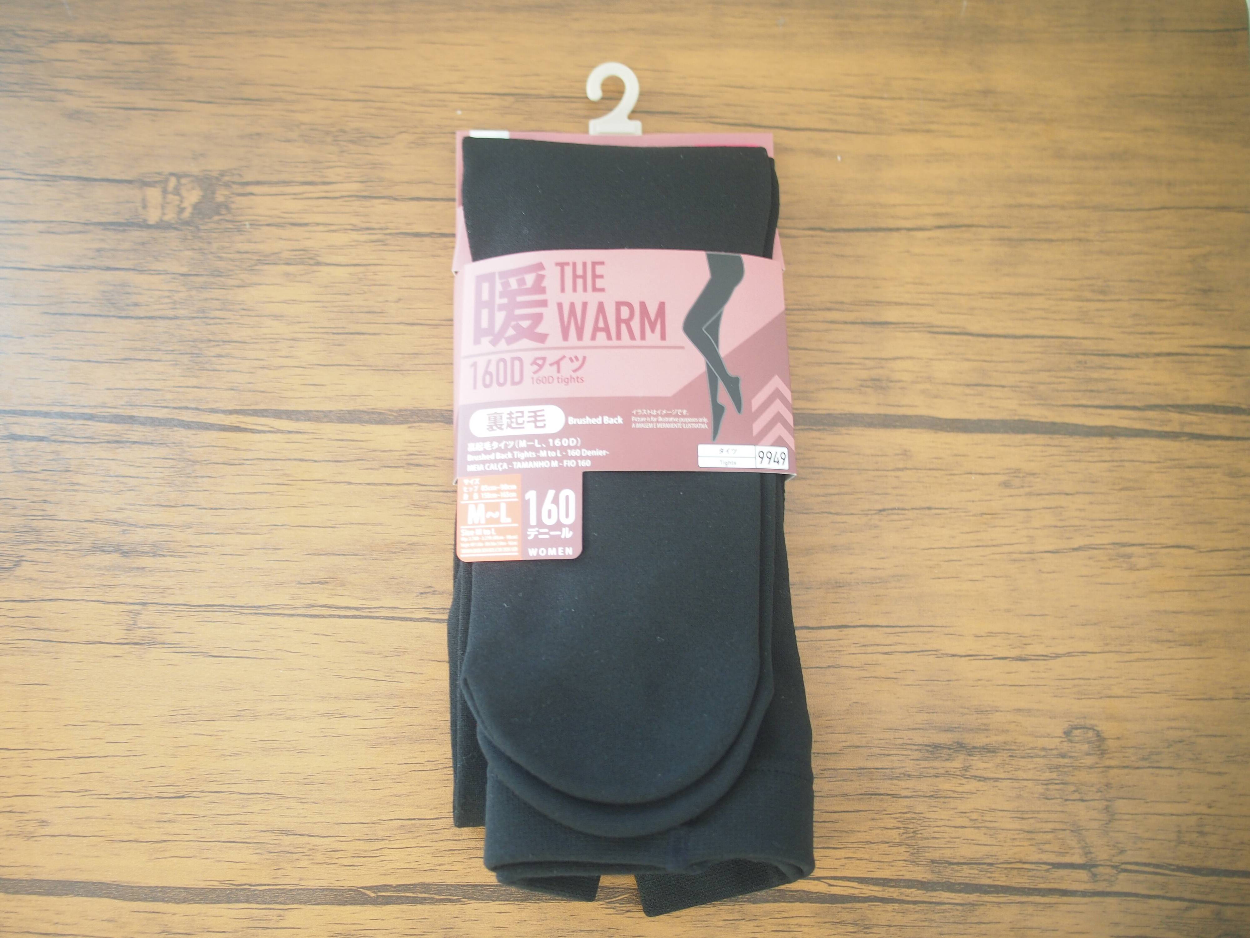 商品自体しっかりとしていて100円ショップ商品とは感じないクオリティーの高さ。裏起毛がついているのでこちらも一般的なタイツより履きやすいのが特徴。