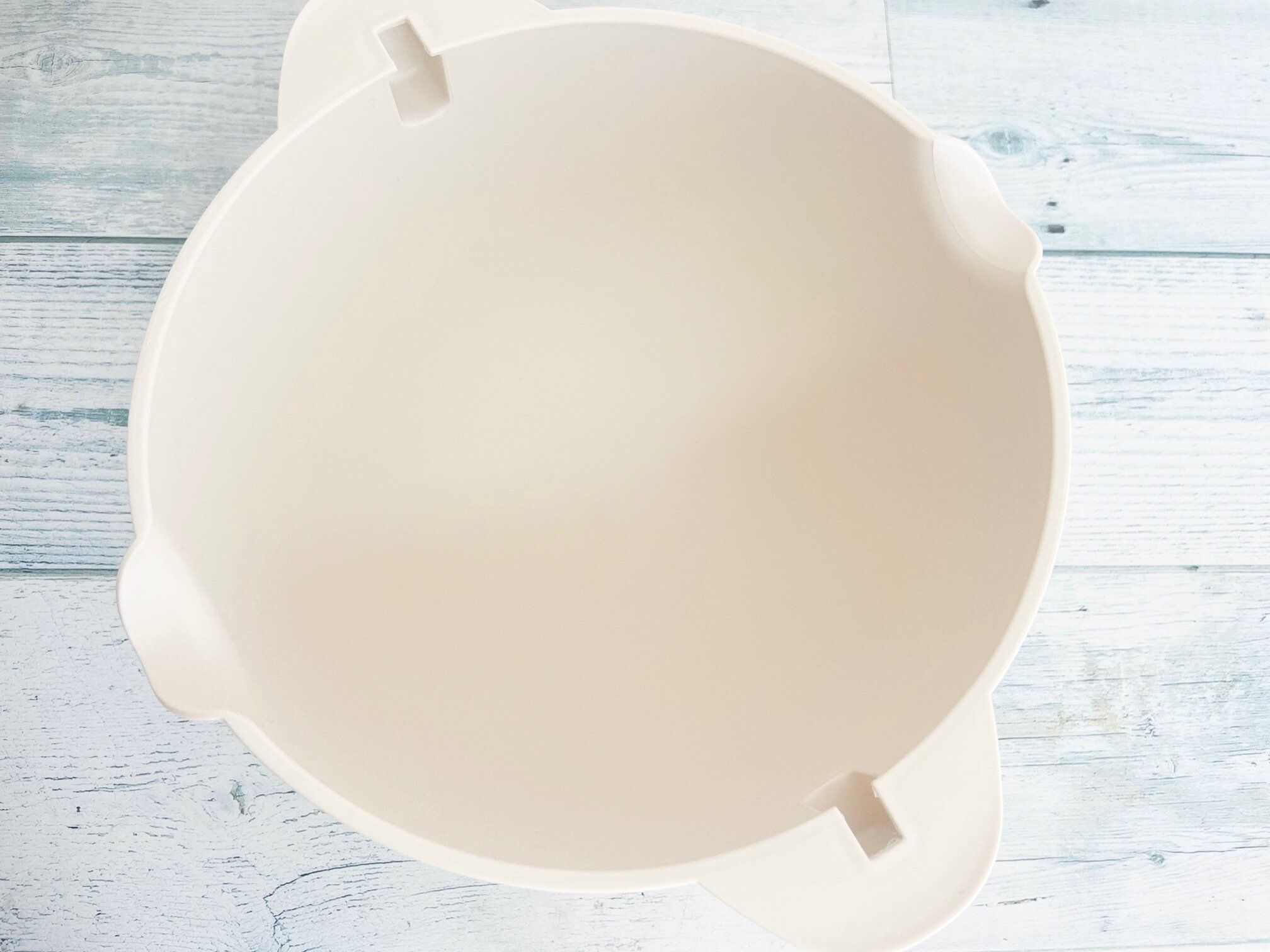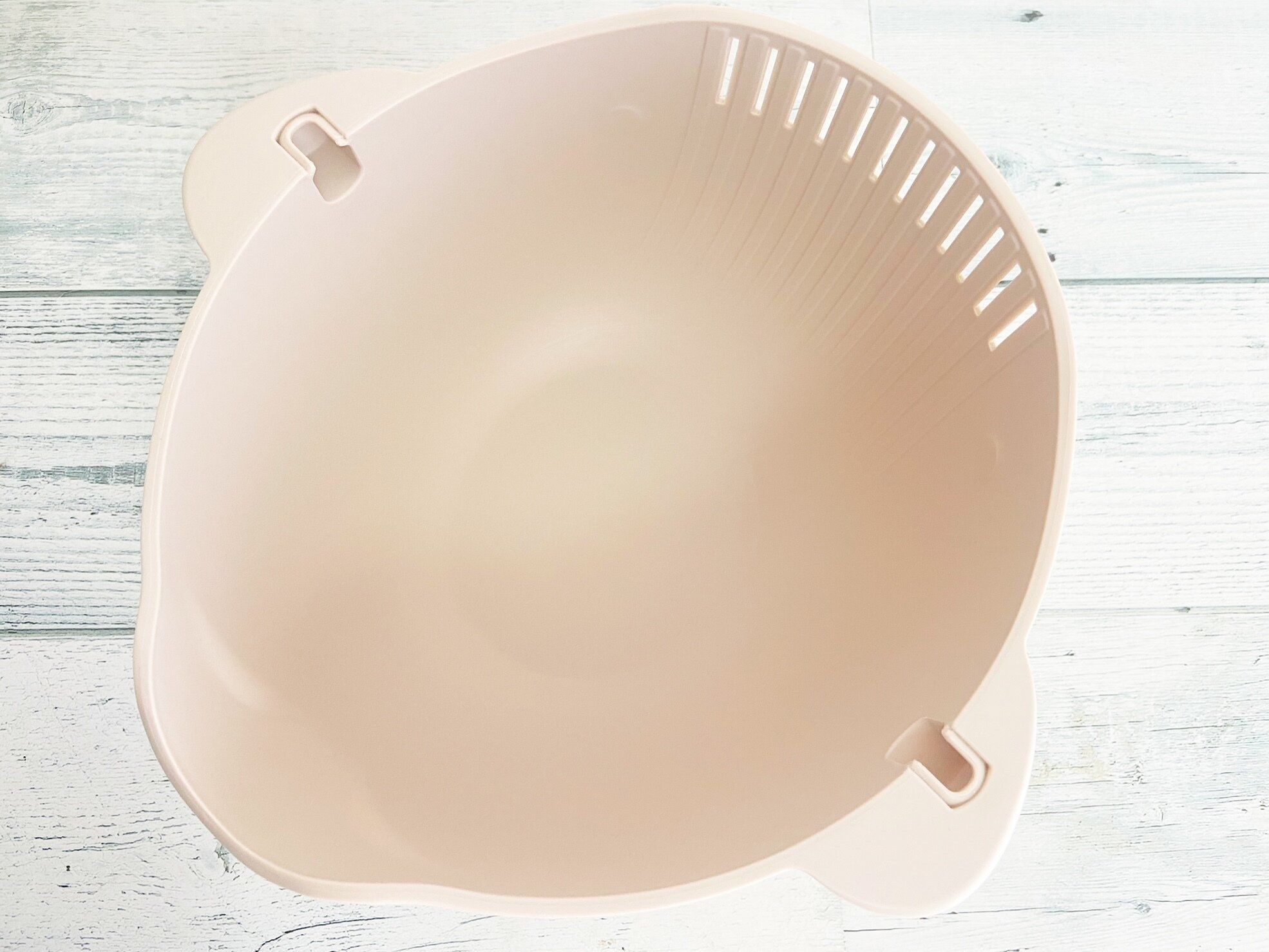 新バージョンの「ボウル」は穴の開いている箇所がなくなり、注ぎ口が2ヵ所になりました。実際に使ってみて思ったのが、穴は開いてない方が使いやすい。「ザル」と「ボウル」が1つになっているので、わざわざ「ボウル」にも「ザル」のような機能は必要ないかも…というのが正直な感想です。洗いやすくなったというのもうれしい改良点!