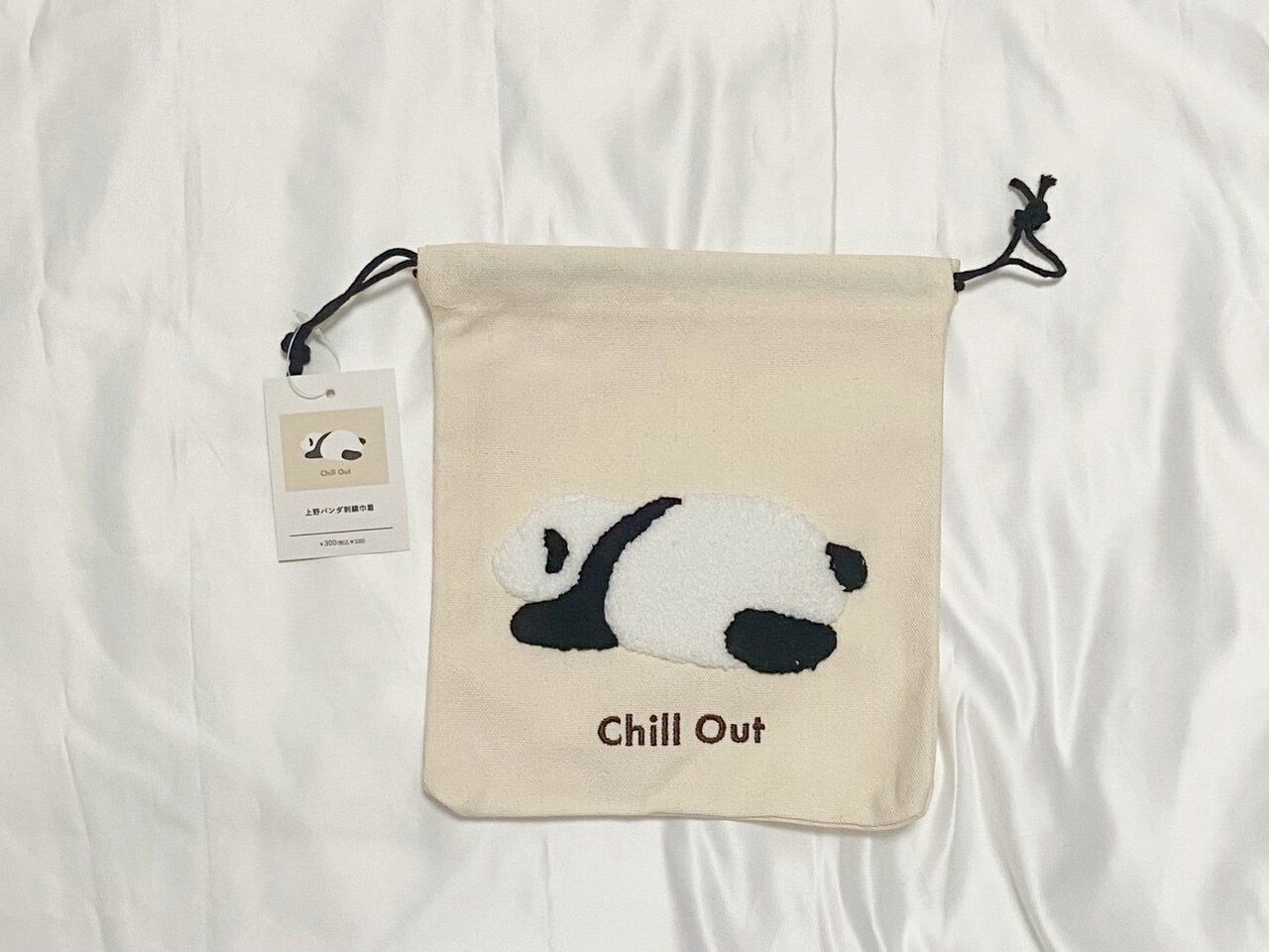 寝そべっているパンダが刺繍されている「上野パンダ刺繍巾着」(330円)は、サイズ約横20cm×縦22cmの巾着です。巾着はポーチとしてはもちろん、子どもの学校や幼稚園・保育園グッズとしても重宝しますよね。寝そべっているデザインは珍しいのでギフトでも喜ばれるはず!