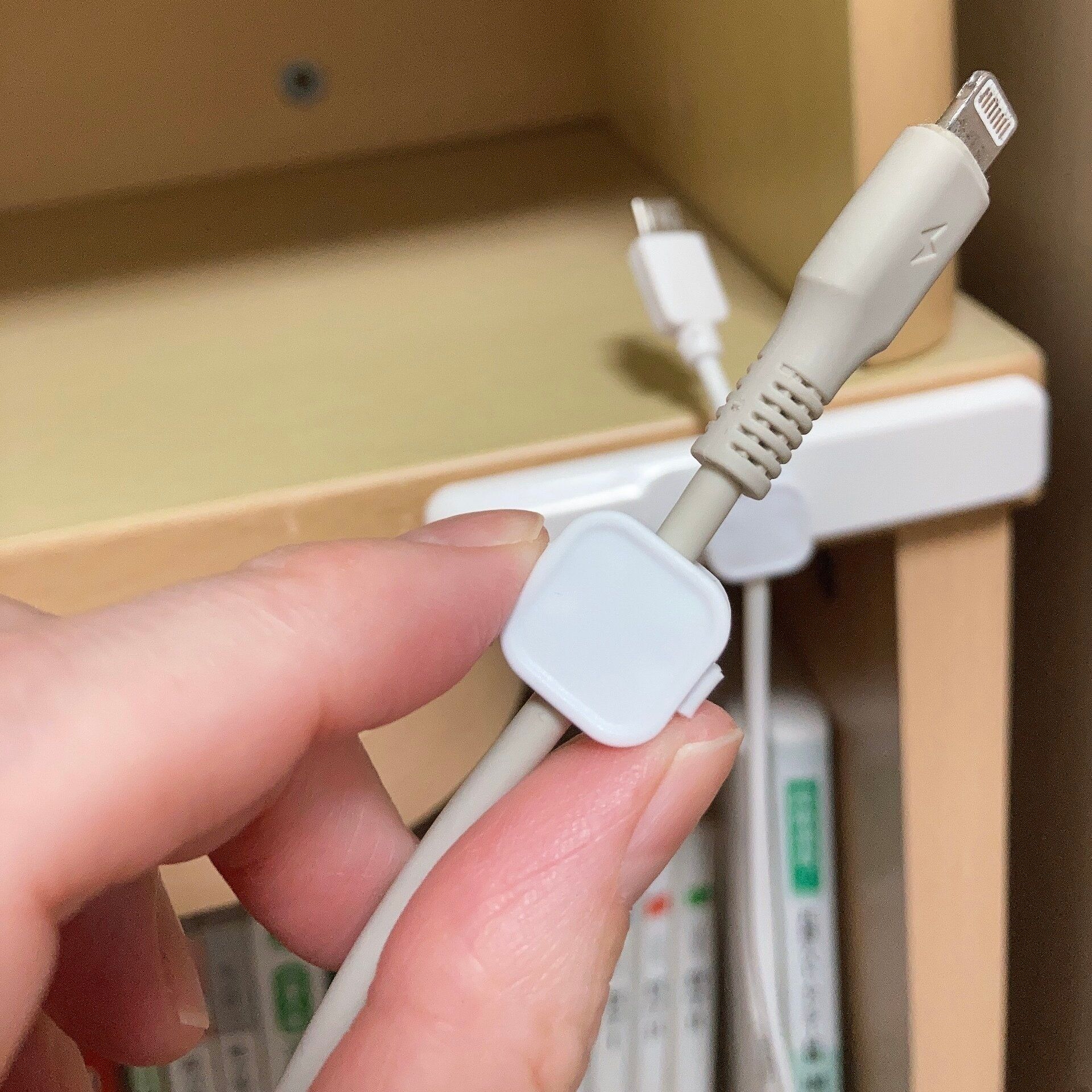 ケーブルにマグネットクリップを取りつけておけば、ケーブルの先を台座に収納することができます。