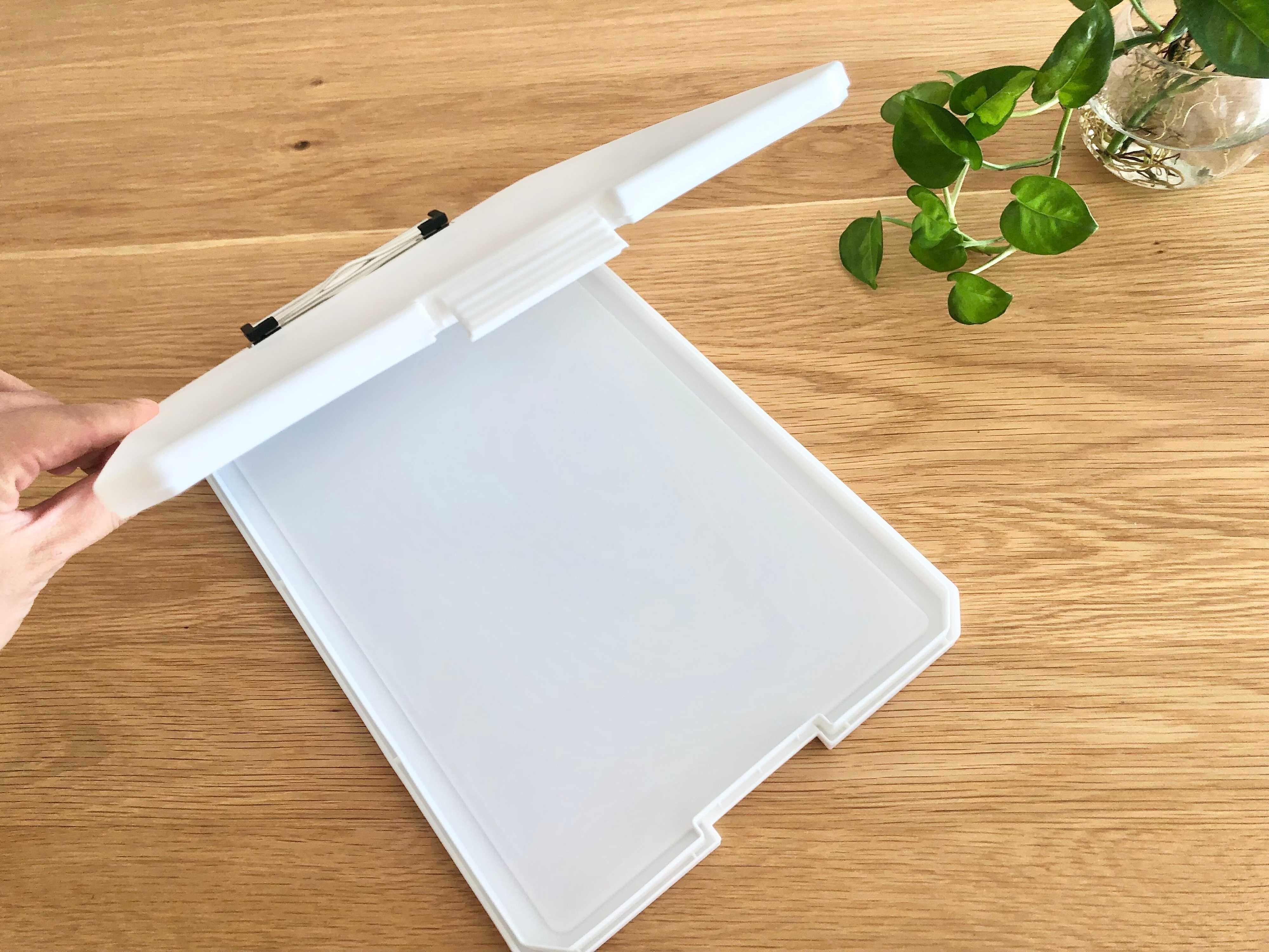 またクリップボードはポリプロピレンでつくられていて、ある程度の硬さがあるので、下敷きを使わなくてもきれいに字は書けます。