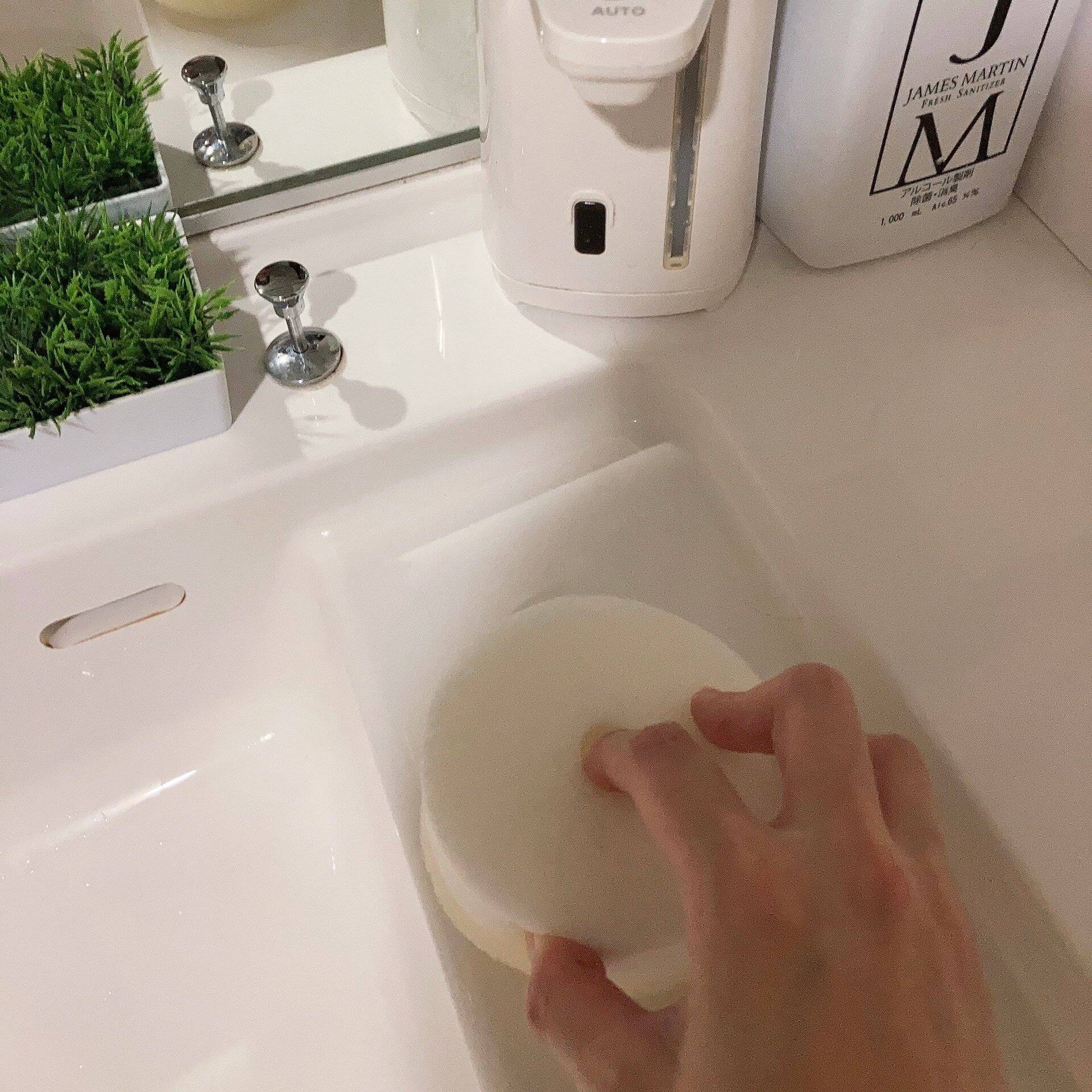 我が家は洗面所にこのスポンジを貼り付けて使っています。