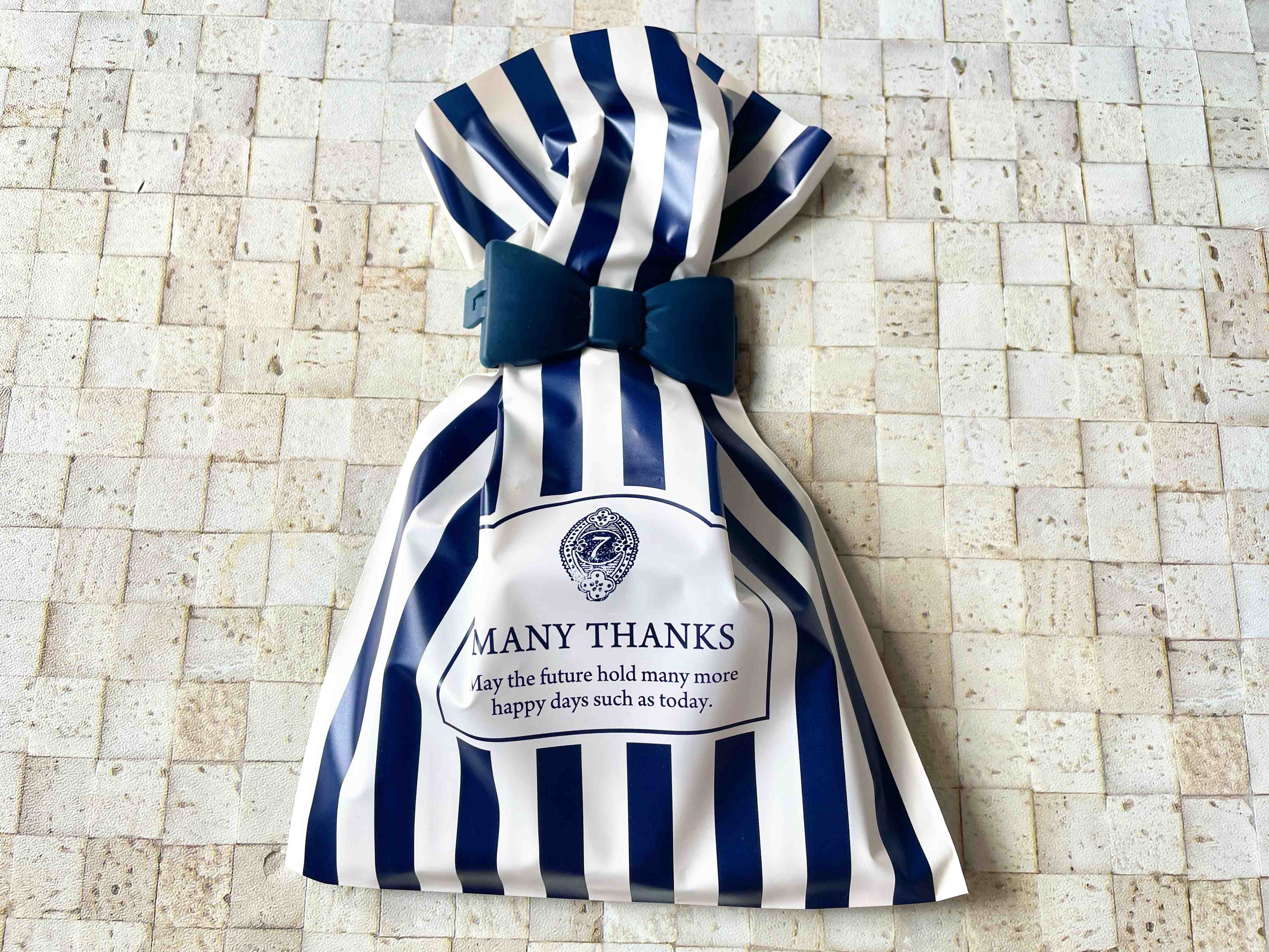 通常は「ビニタイ」と呼ばれるビニールにワイヤが入ったヒモをねじって留めたり、リボンをかけたりしますよね。「リボンクリップ」で留めると、リボンが大きくて可愛い!プラスチックでしっかりしているのが高見えかも?最初からラッピング用みたいですよね。