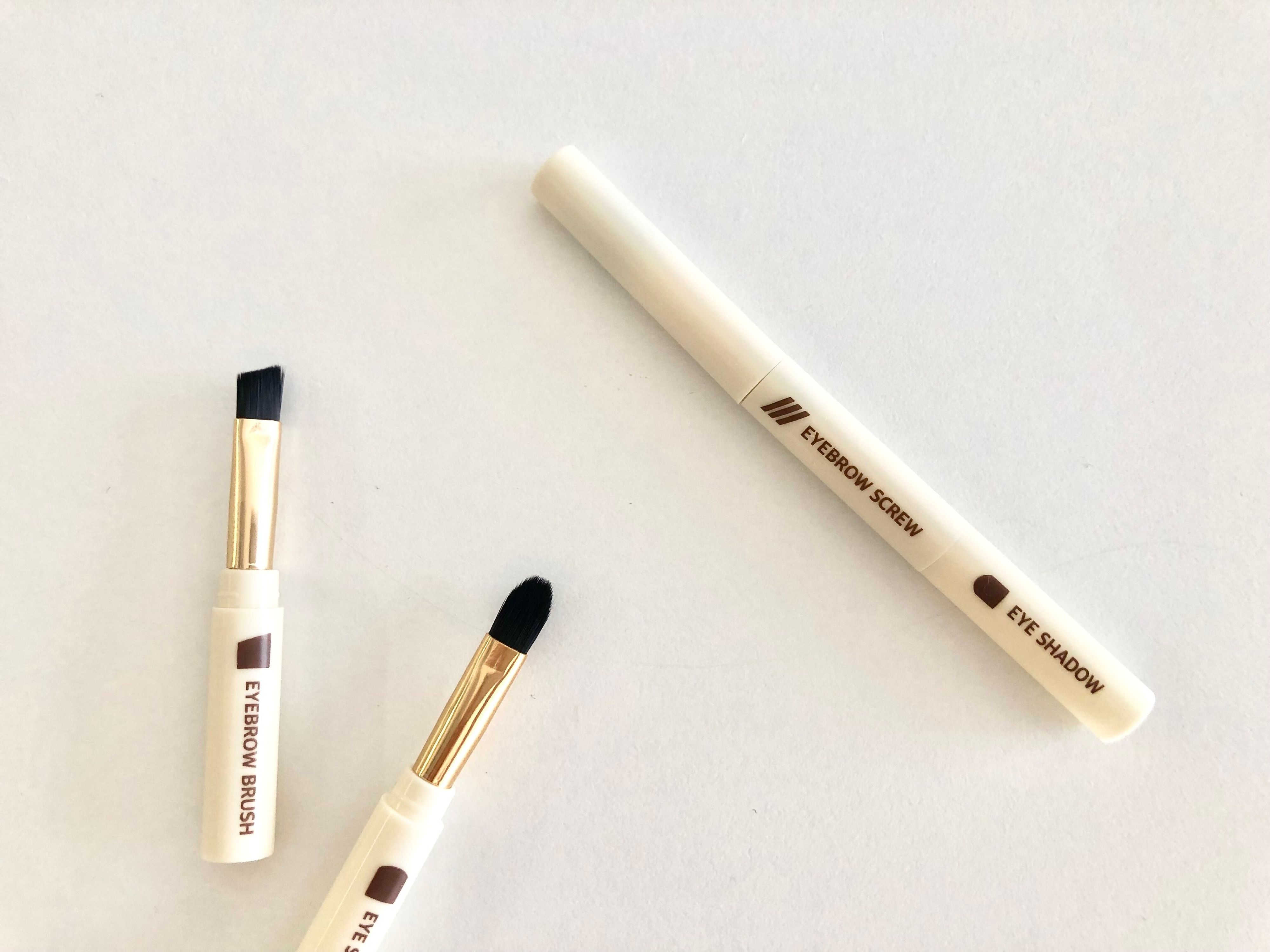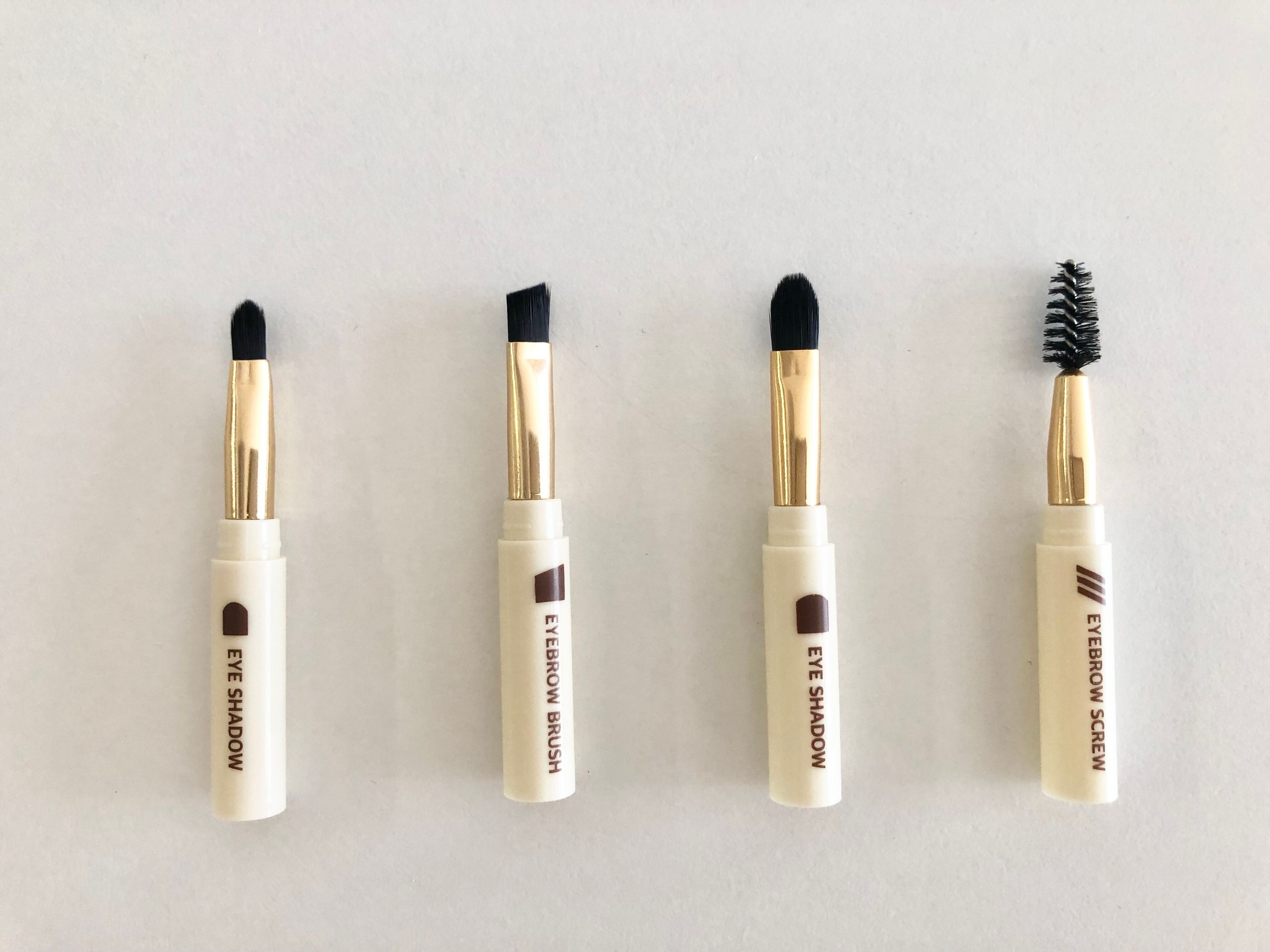 メイクブラシの種類は、アイシャドーブラシ(大・小2種類)、アイブロウブラシ、アイブロウスクリュー、の4種類。