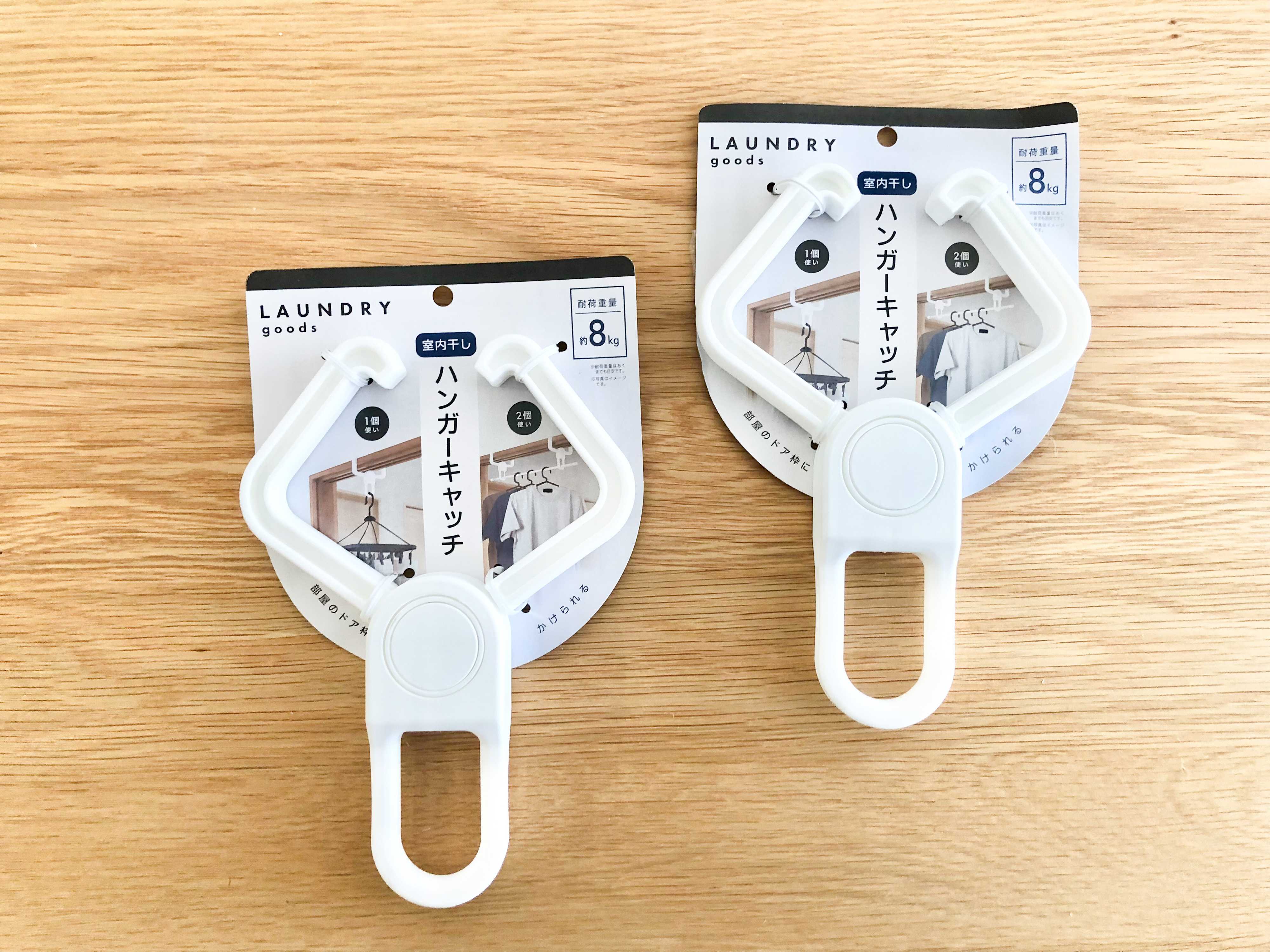 こちらが部屋干しの悩みを解決することが出来る便利グッズ、セリアの「部屋干し ハンガーキャッチ」です。