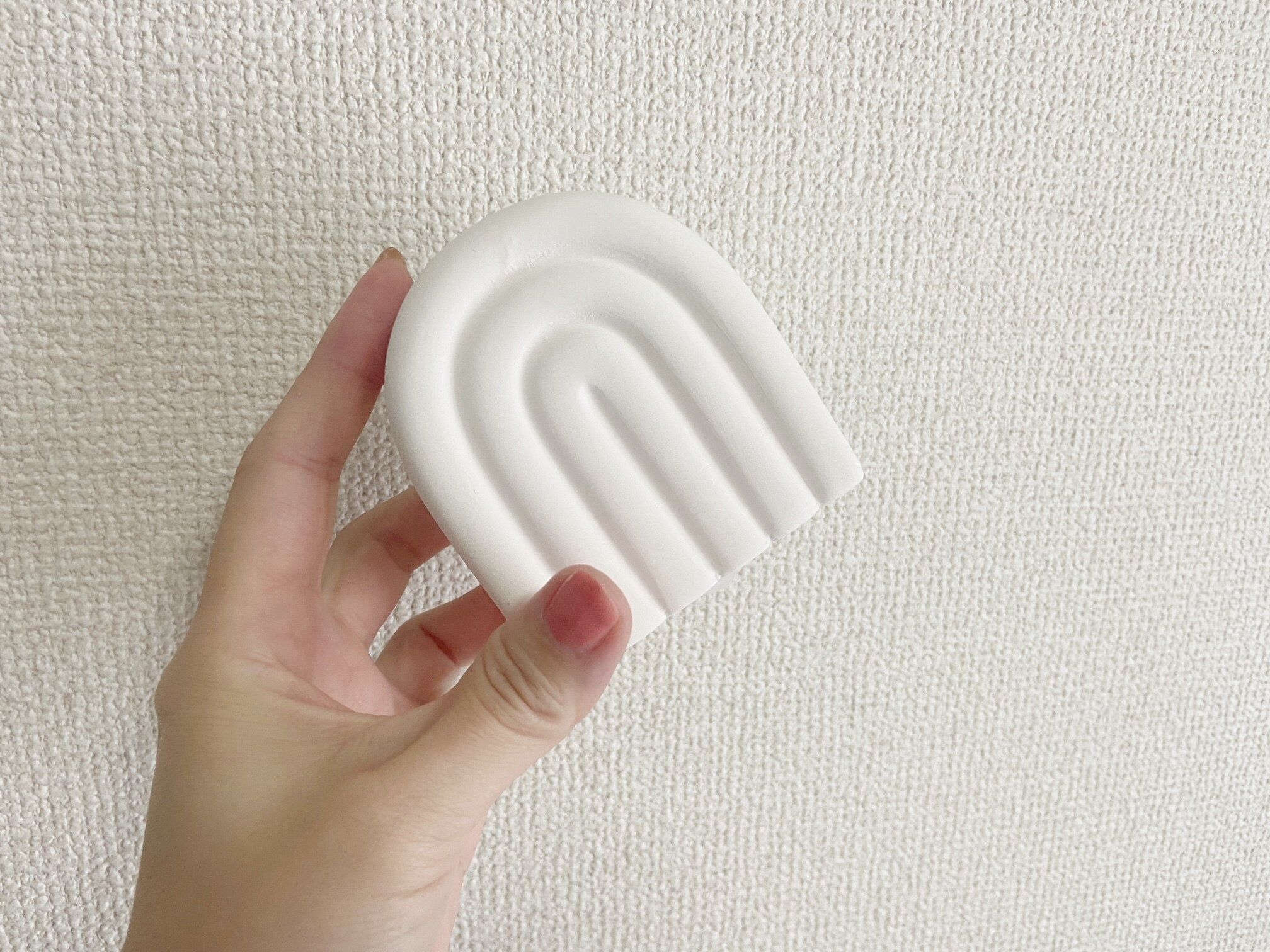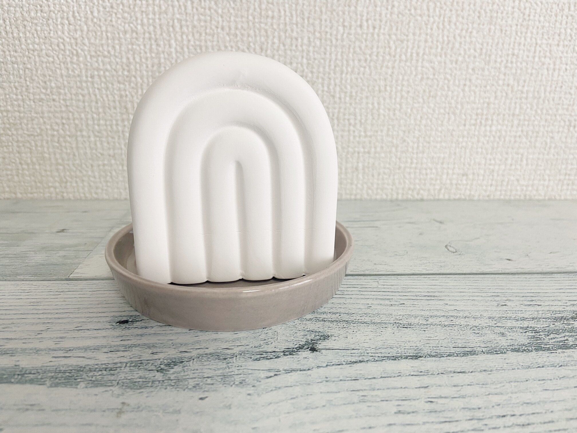 オブジェのデザインは筆者が購入したアーチっぽいデザインの他に、カヌレのようなかわいらしいデザインの2パターン。どちらもカラーはホワイトで、北欧風・韓国風といった女性に人気のインテリアにもピッタリのデザインです。もちろんモノトーンベースのお部屋にも◎!