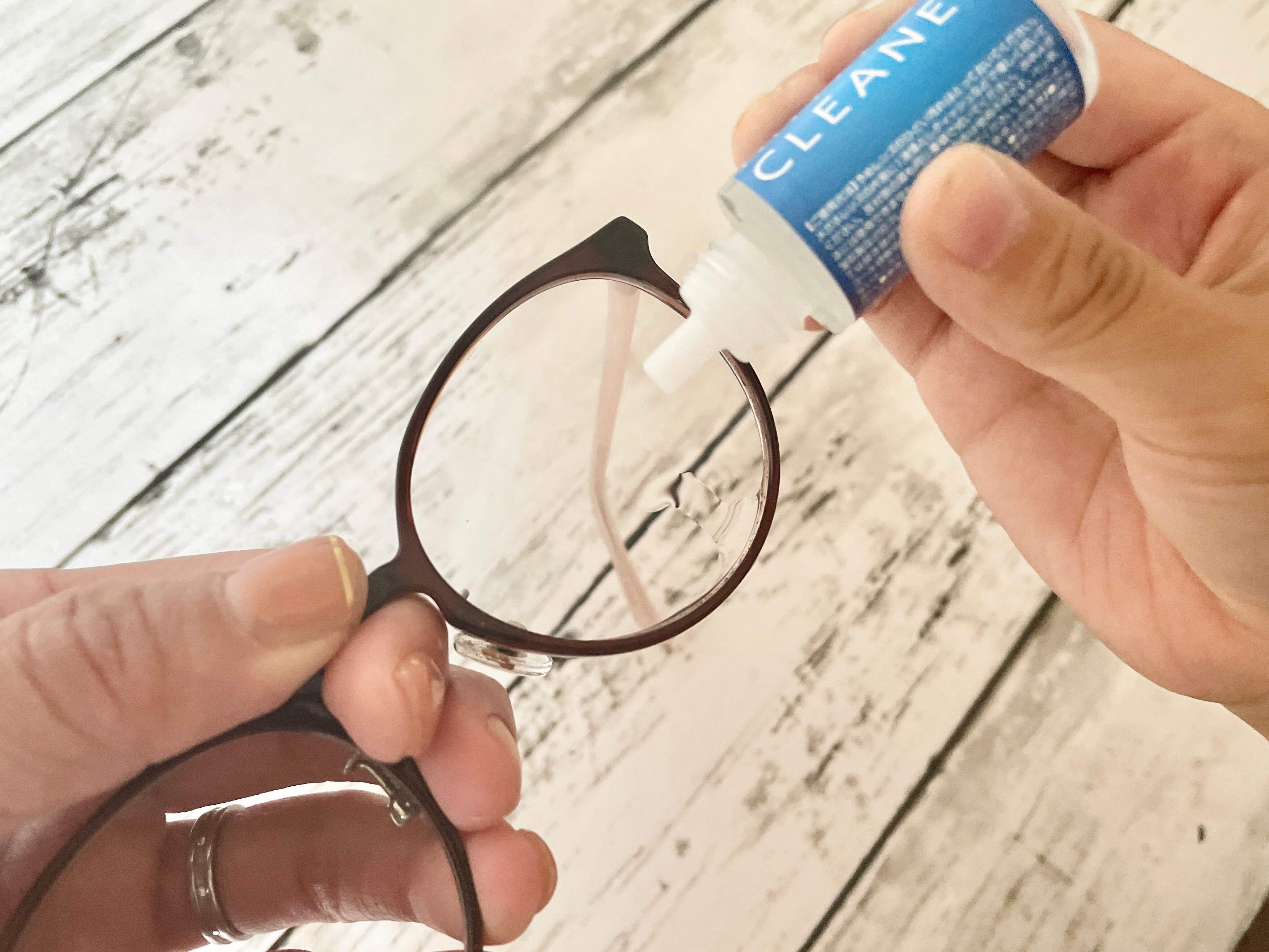 使い方は簡単で、レンズの片面に一滴たらして、ティッシュなどのやわらかいもので拭くだけ。レンズの汚れがひどい場合は、先にレンズをキレイにしてから使ってくださいね。