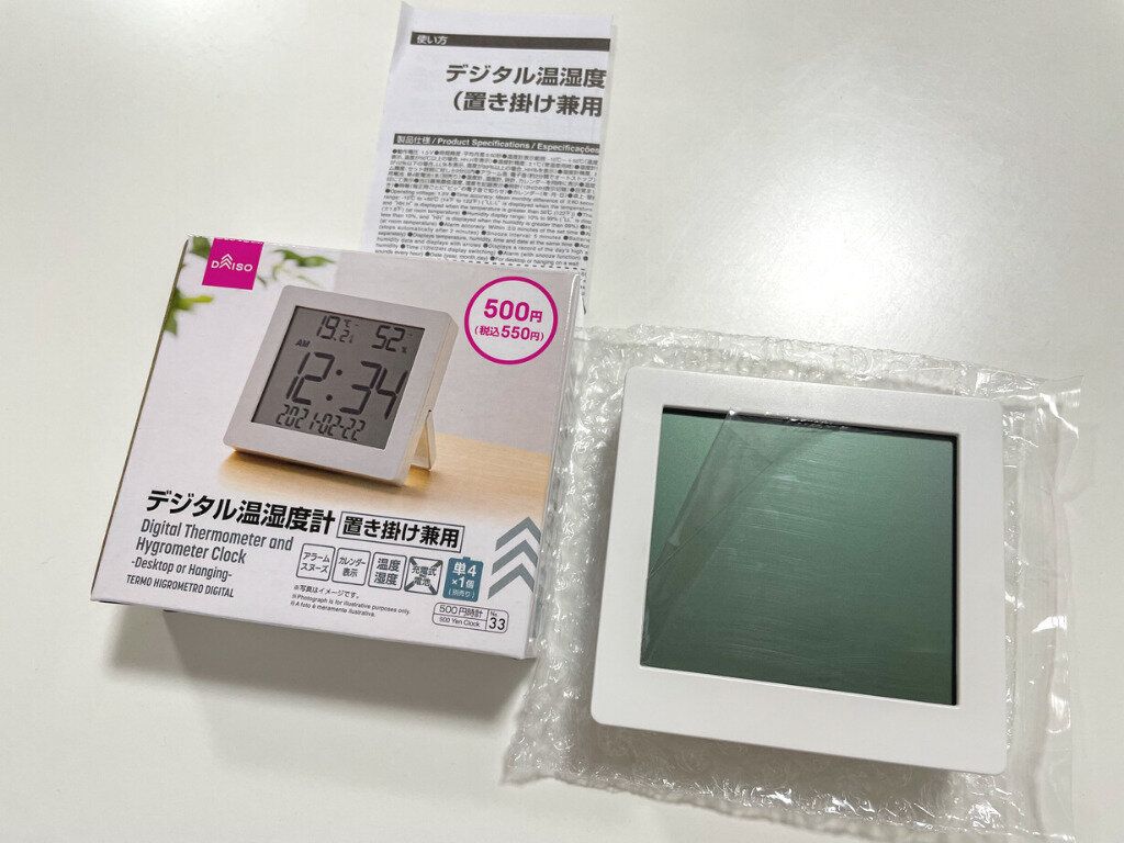 ご紹介するのは、ダイソー商品「デジタル温湿計 置き掛け兼用」550円です。