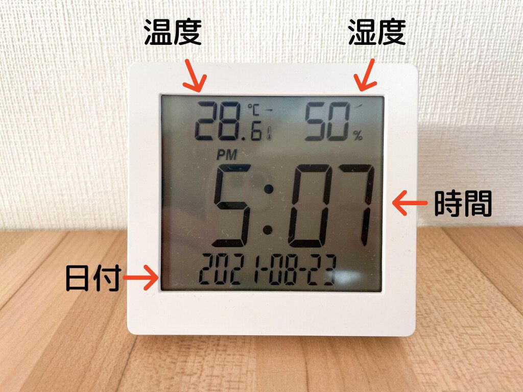 ダイソーのデジタル温湿度計は、1画面で欲しい情報がすぐにわかる優れものです。