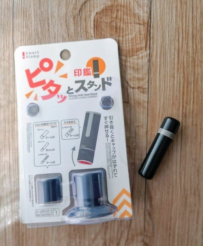 使用できるハンコは、ダイソーで販売しているスタンプタイプの印鑑、その他、シャチハタのようなもう少し太いタイプの印鑑もアダプターを使い分けることで使用することが出来ます。