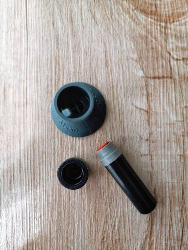 開封するとグレーのゴムの土台と、黒いキャップのようなアダプターが付属されています。