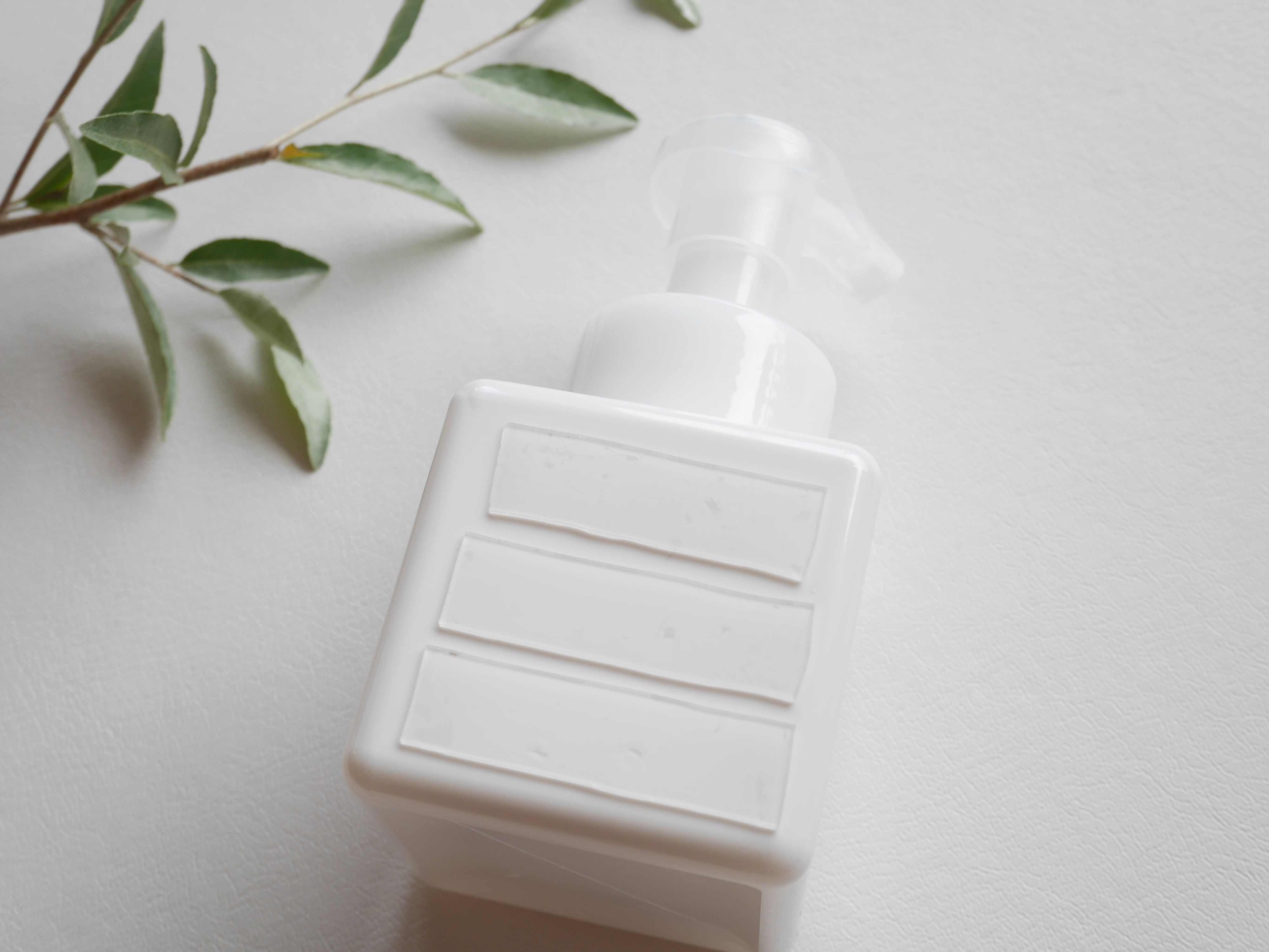 こちらの画像で使用しているボトルは、無印良品の「PET詰め替えボトル」です。ボトルの側面が平らなモノを使用すると、ピッタリ接着できます。